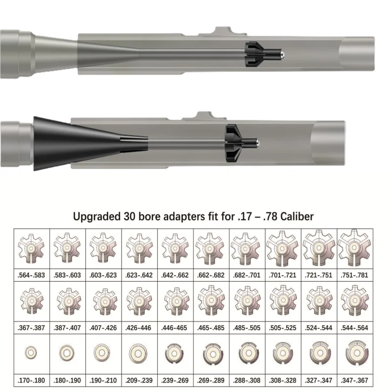 * A medida que aprietes el tornillo, el diámetro del adaptador se expandirá.Una vez ampliado para que coincida con su cañón, empuje el adaptador dentro del cañón de su arma de fuego.