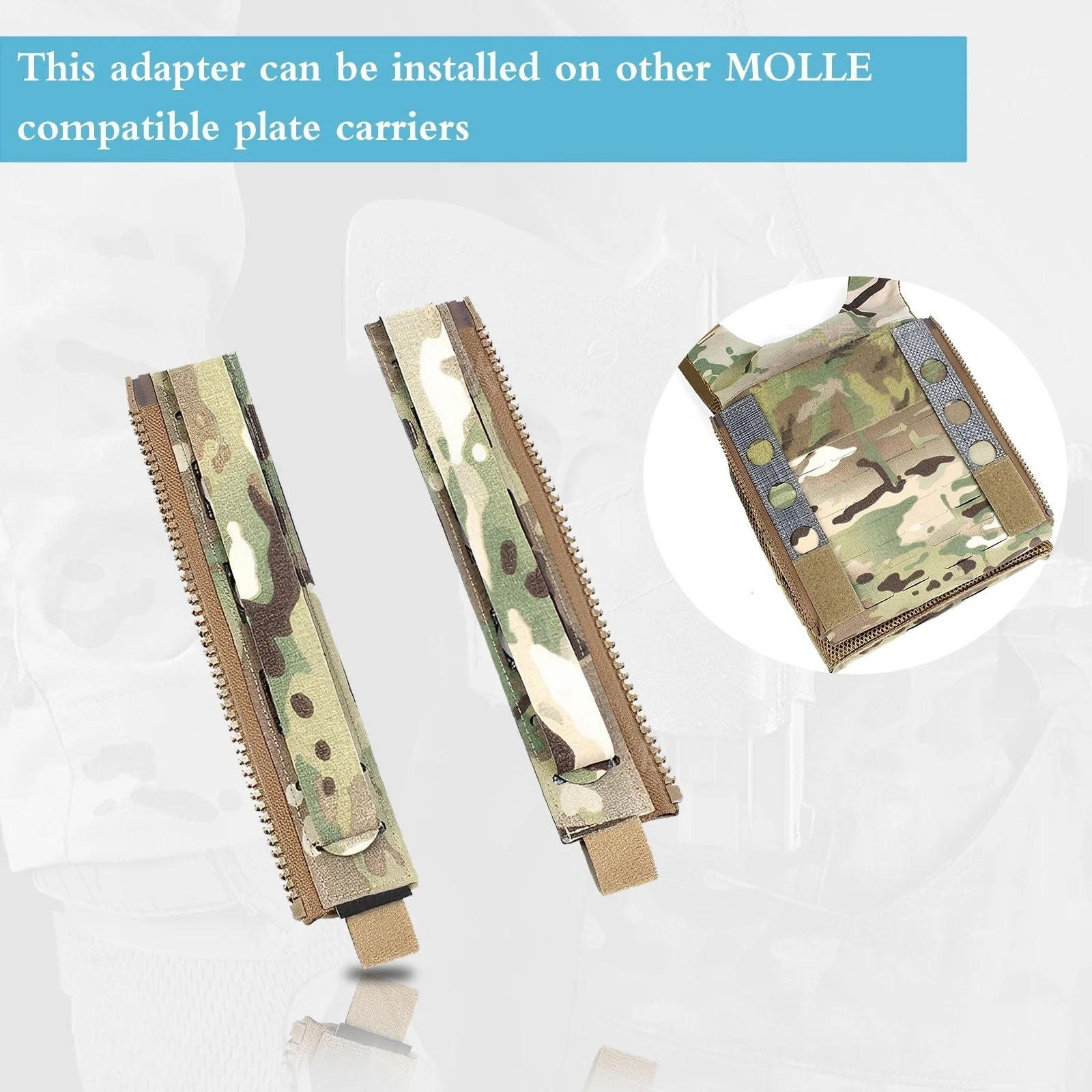 Este producto ofrece a los propietarios de el bolsillo para placa trasera MOLLE, la base Molle o prácticamente cualquier persona que tenga un soporte para placa MOLLE con la capacidad de utilizar todos los paneles Adapt Back estilo Ferro.