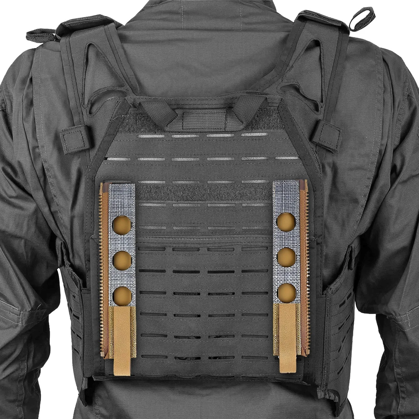 Utilice el sistema MOLLE para agregar cremalleras al chaleco sin cremalleras (por ejemplo, CPC, AVS, JPC) para colocar fácil y rápidamente mochilas con cremallera, bolsas de hidratación, bolsas de supermercado y más.