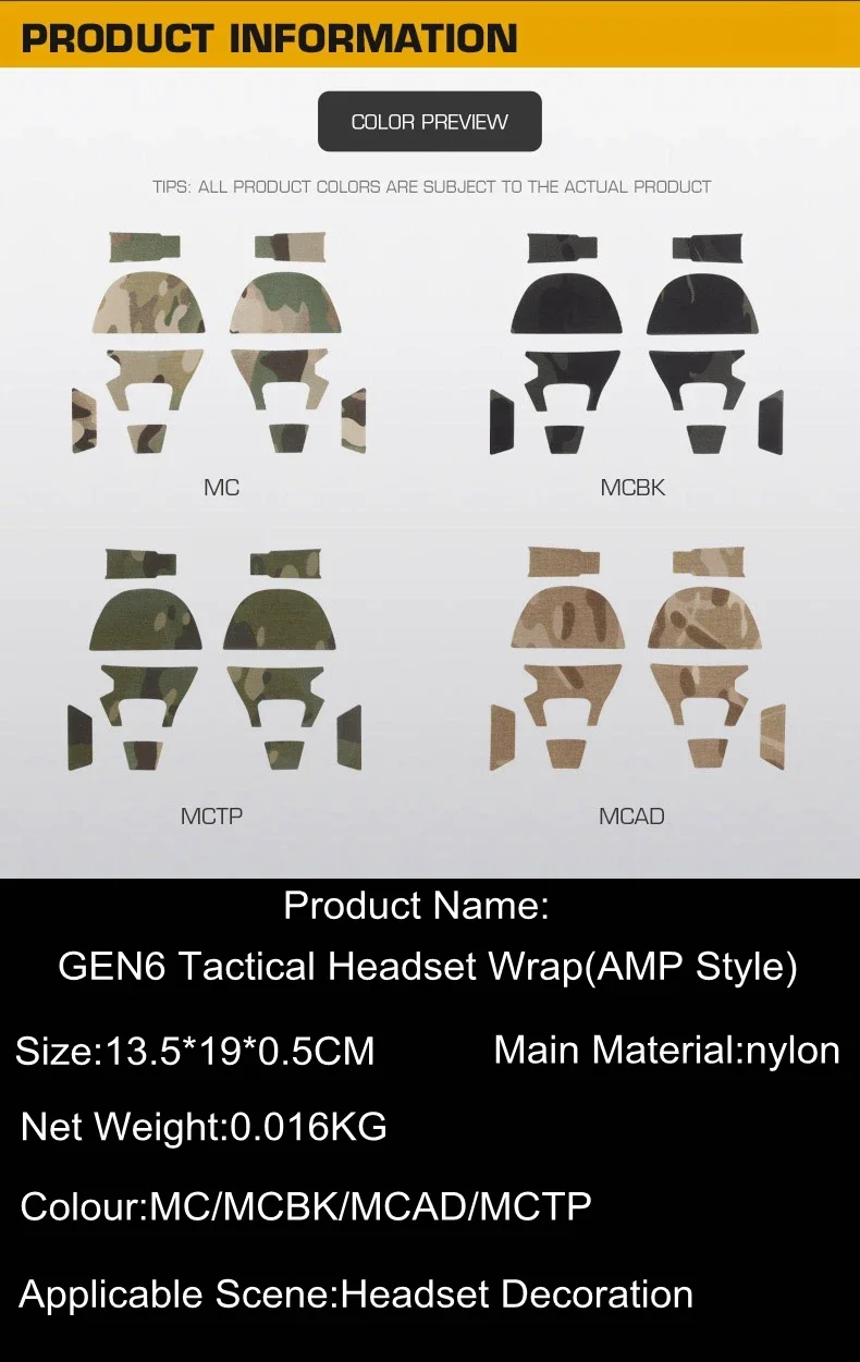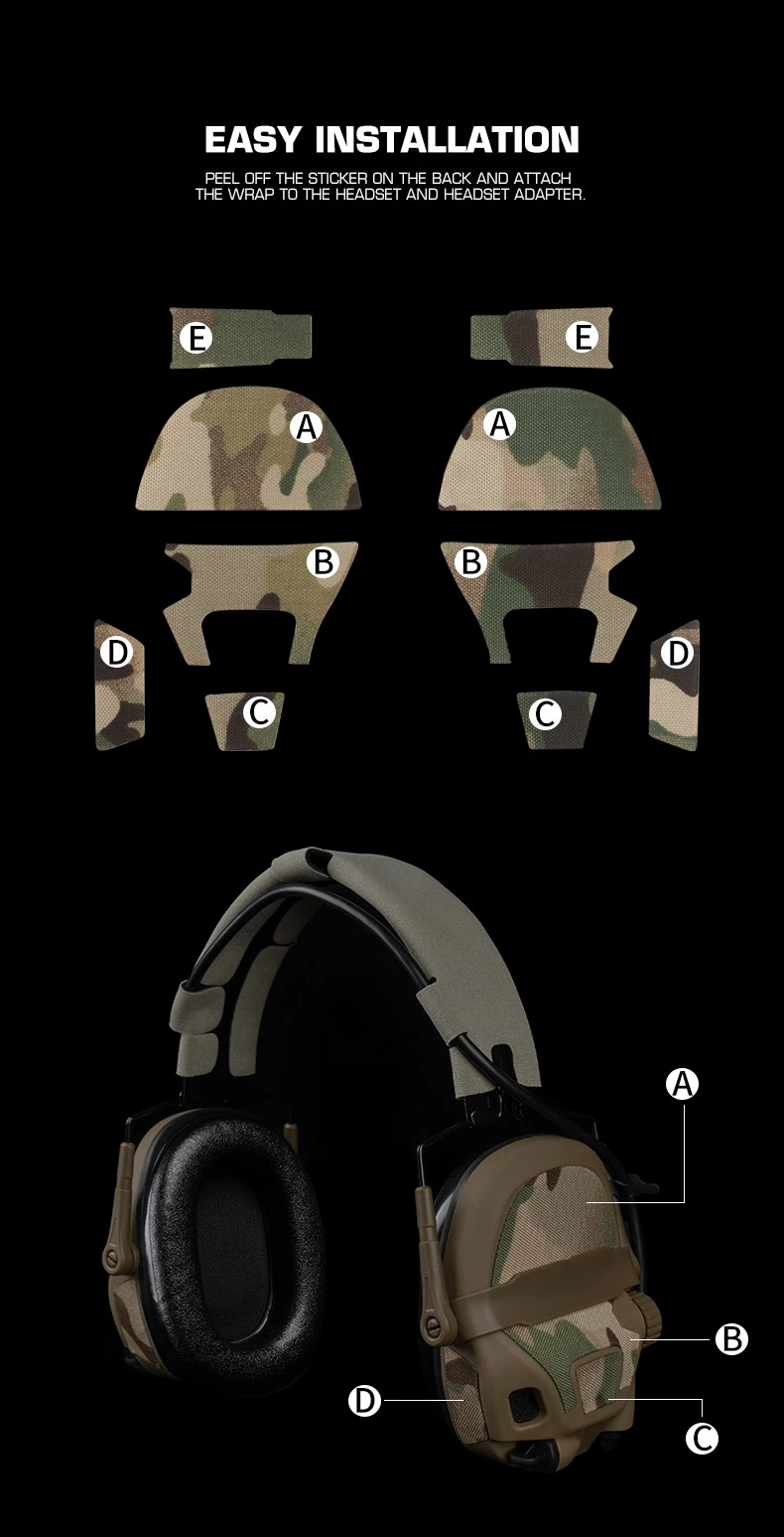 Adhesivo para auriculares tácticos, parche mágico de camuflaje para GEN6, accesorios de decoración para orejeras de auriculares para tiro de caza