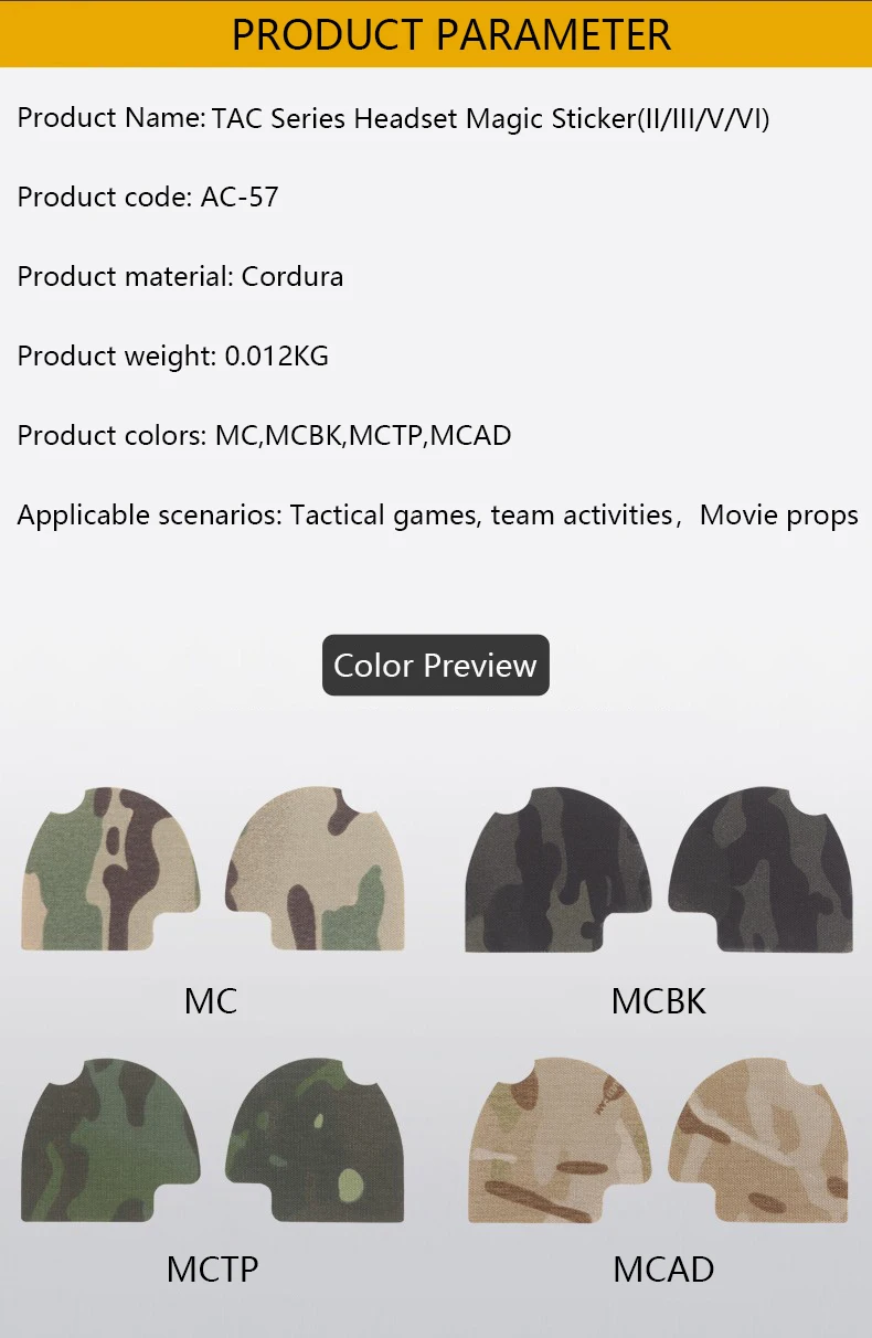 Adhesivo mágico para auriculares de camuflaje serie TAC (II/III/V/VI), adaptación exclusiva, fácil de usar, unión de cinta mágica