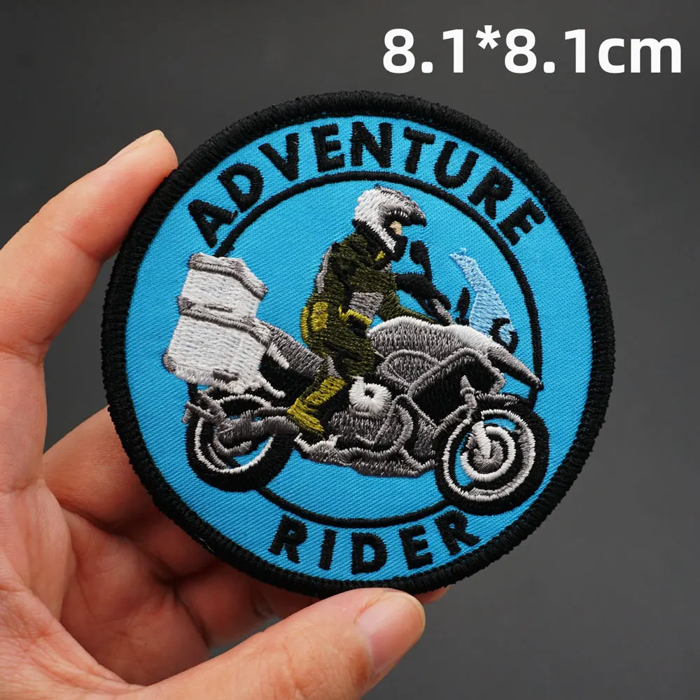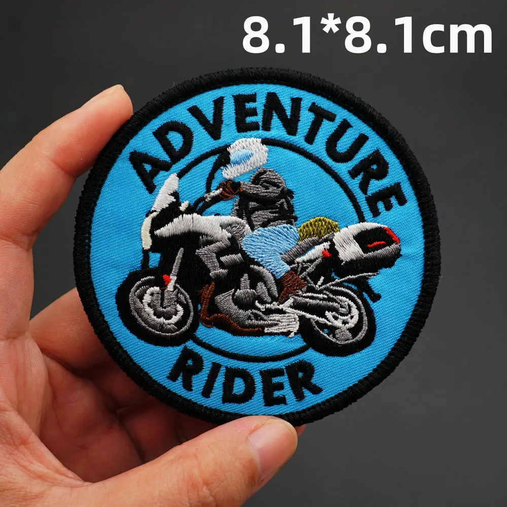 Adventure Rider parches bordados Punk con respaldo de gancho, Chaleco de cuero de Caballero de motocicleta, accesorios de decoración, apliques
