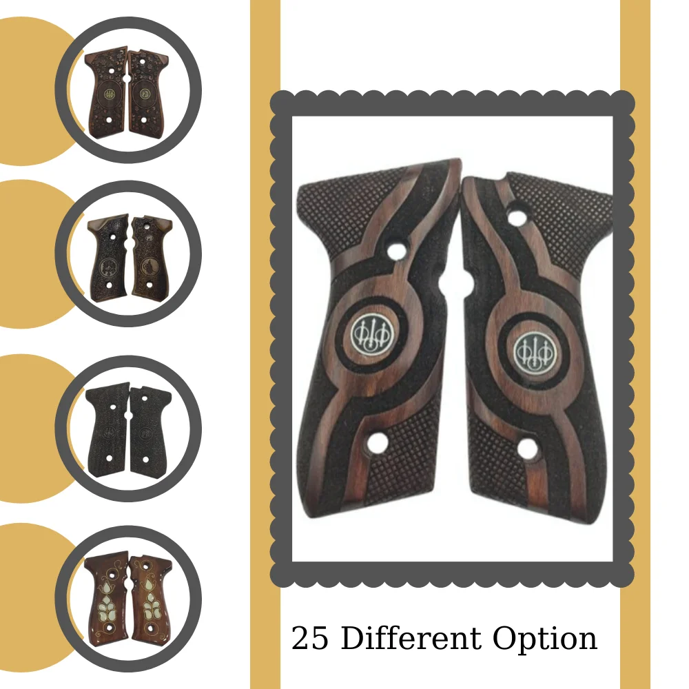 Beretta 92S Custom Laser Cut Wood Inlay Grips Gun Accesorio Pistola de caza