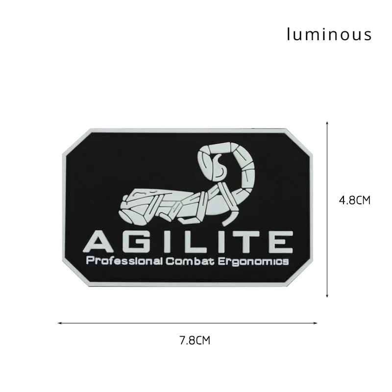 AGILITE-Parches tácticos de PVC para mochila, insignias de moral de escorpión, brazalete luminoso, ágil, pegatina