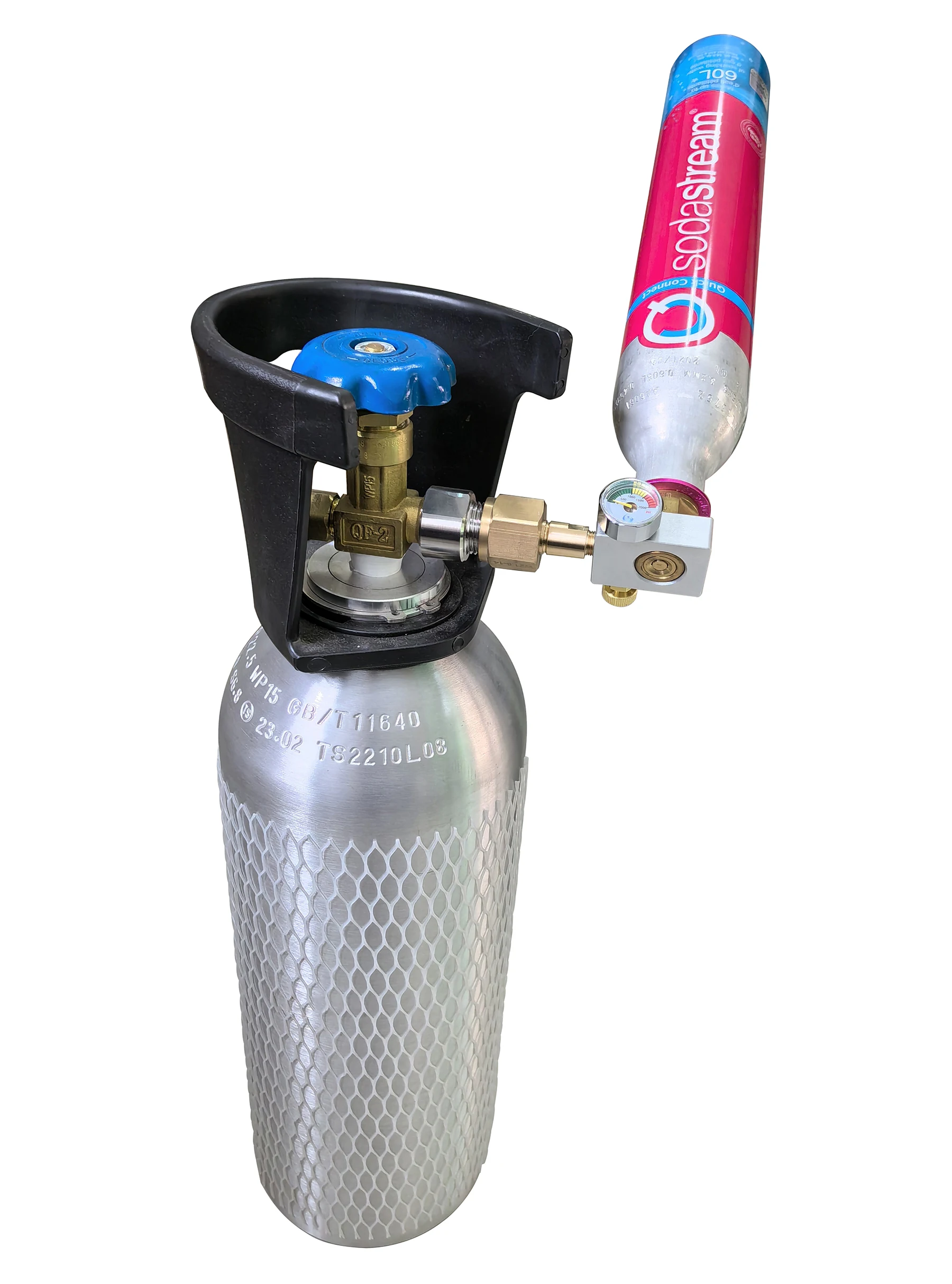 Utilice este adaptador, es fácil rellenar su cilindro de CO2 ART, TERRA, DUO con un tanque C02 grande, ahorre tiempo y dinero y obtenga rápidamente suficiente agua con chispas.Diseño pequeño y exquisito.