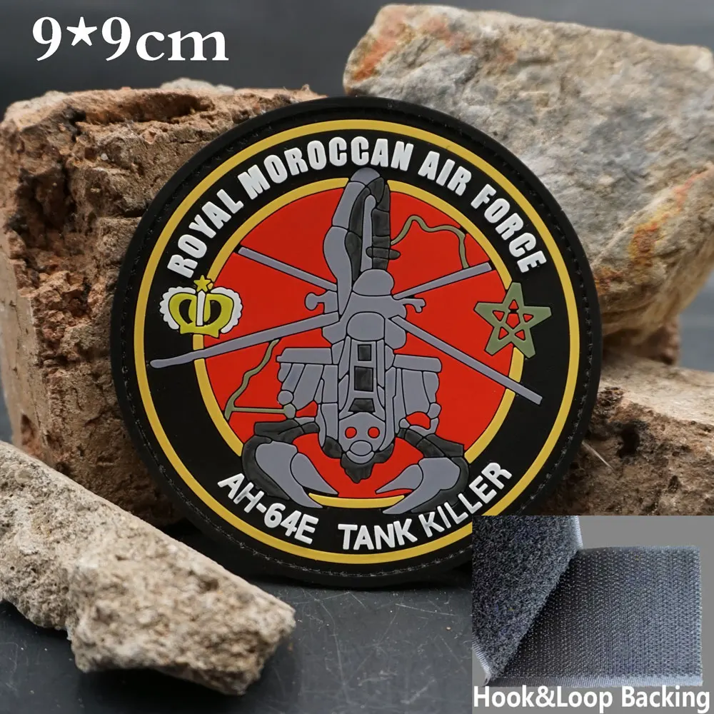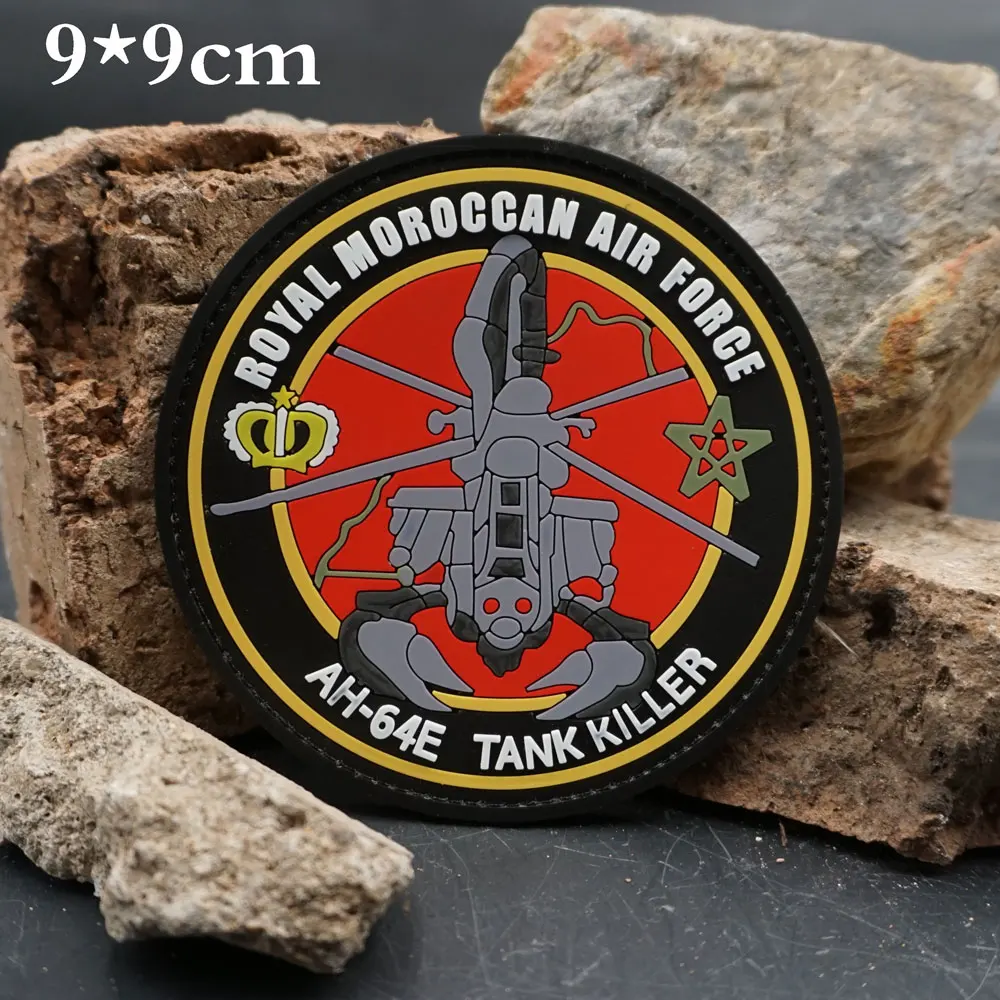 AH-64E de la Real Fuerza Aérea de Marruecos, parches tácticos de PVC con gancho de respaldo para mochilas, ropa, accesorios militares