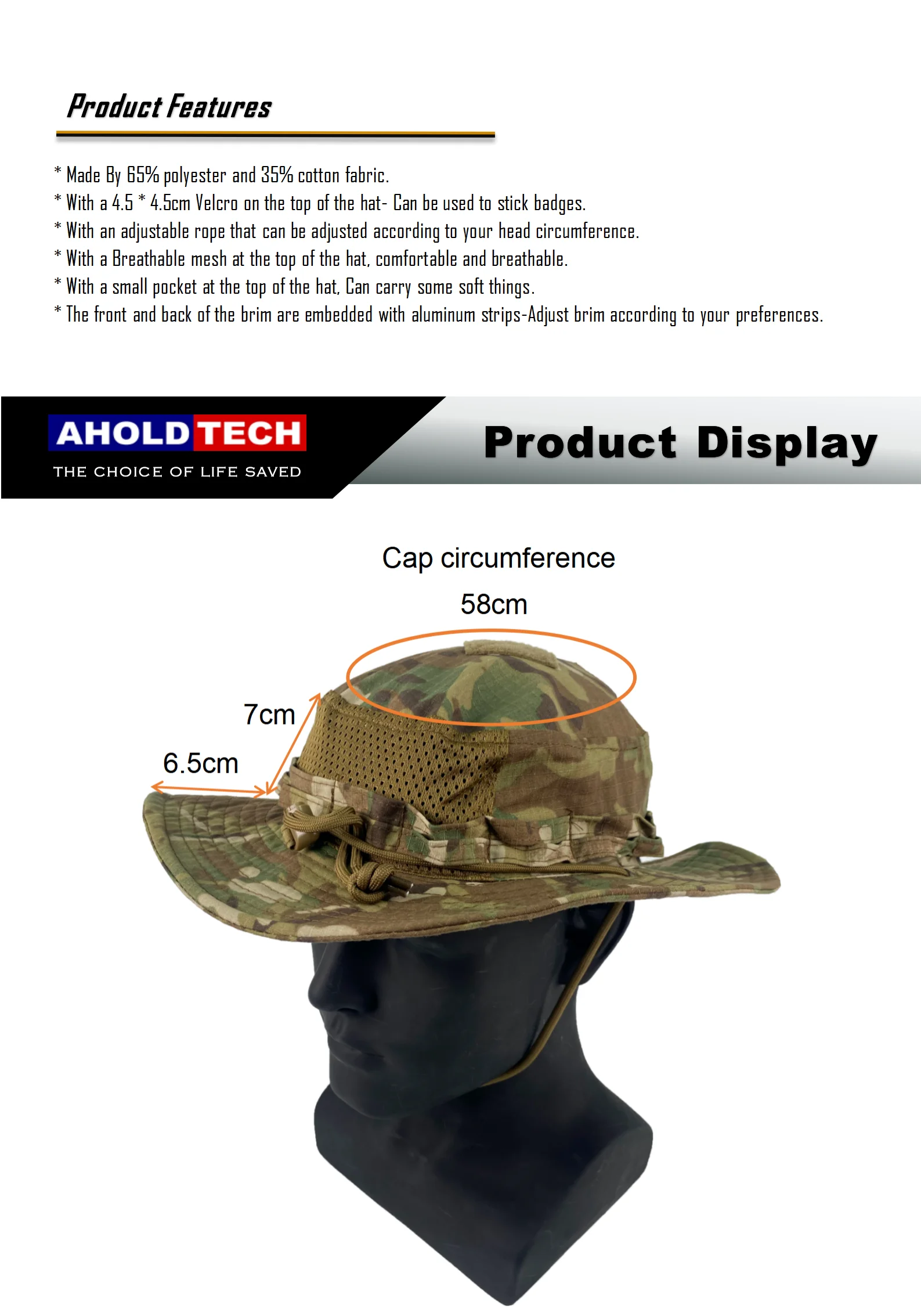 * Con un velcro de 4,5*4,5 cm en la parte superior del sombrero. Se puede usar para pegar insignias.
