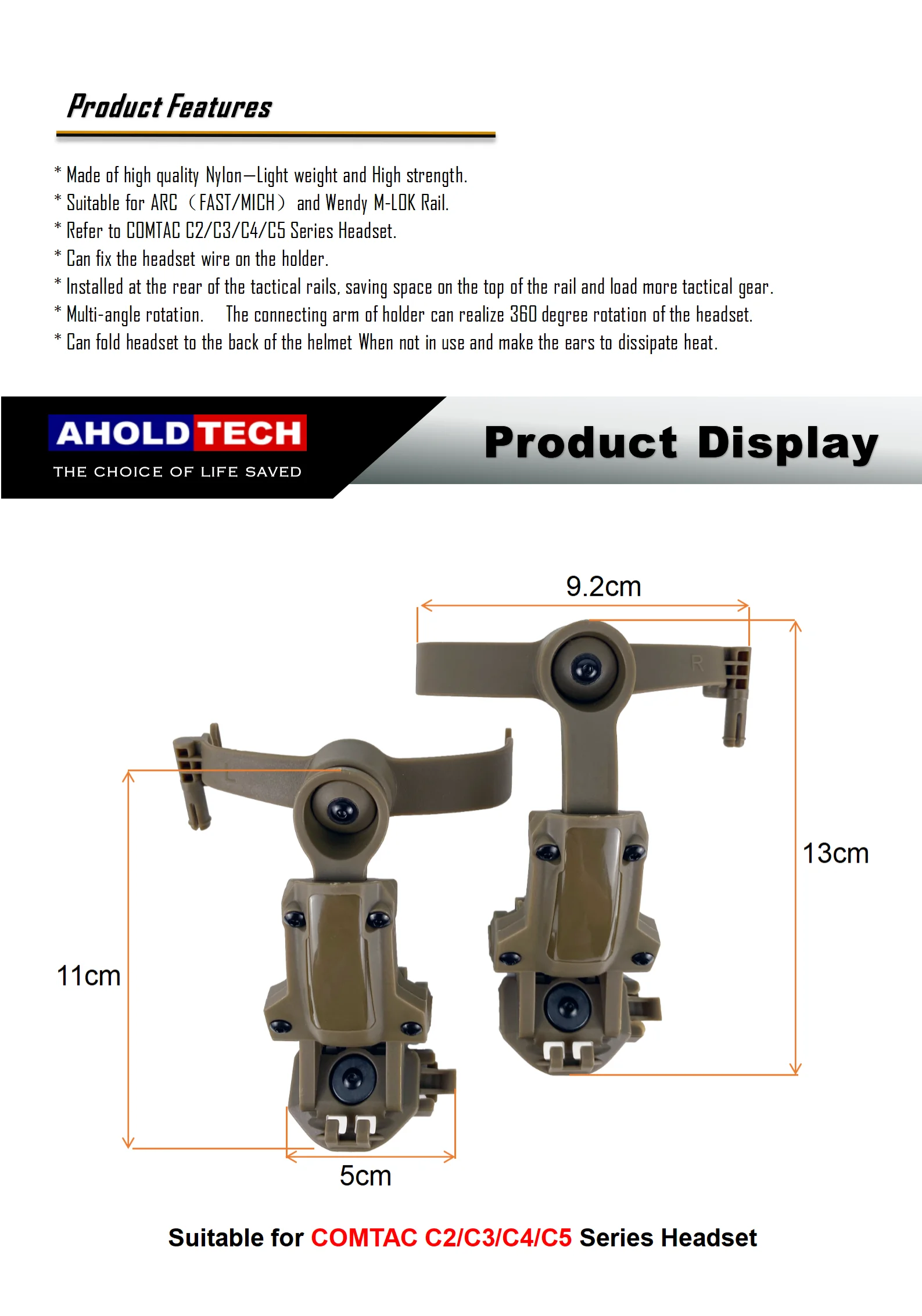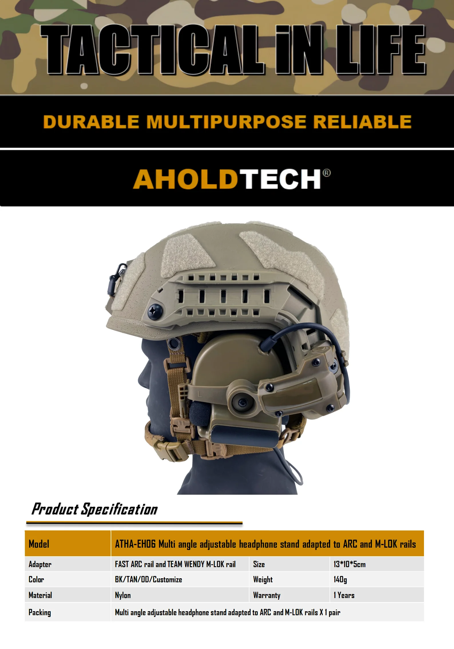 Aholdtech-Soporte táctico para auriculares, adaptador de riel para auriculares ARC/M-LOK Wendy, soporte para auriculares COMTAC Sport hunt