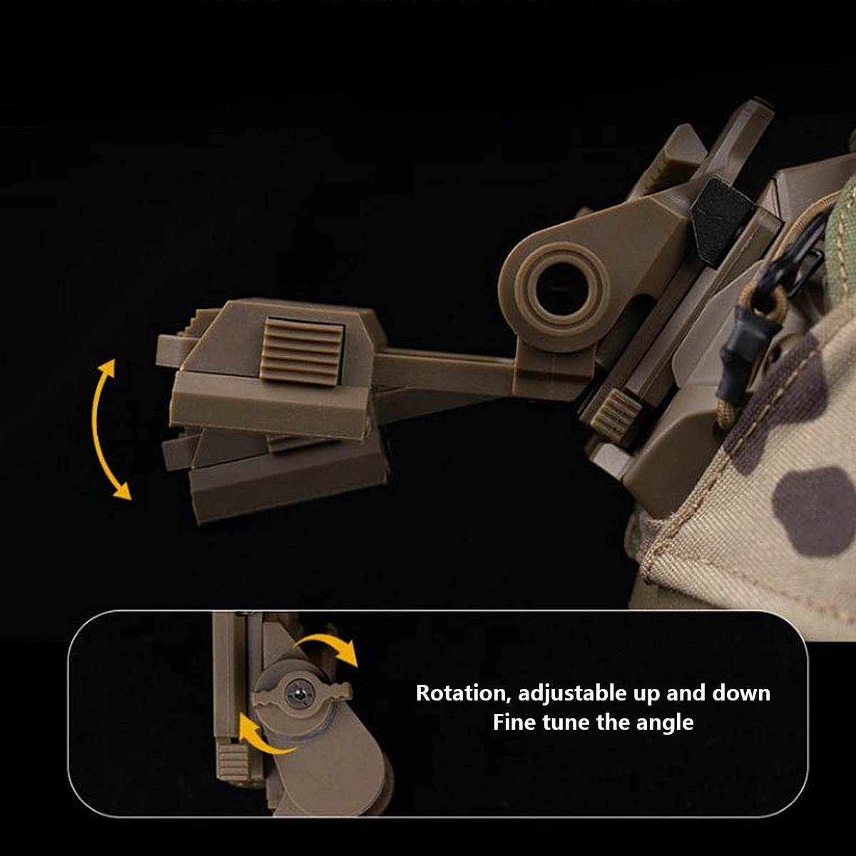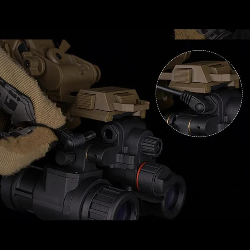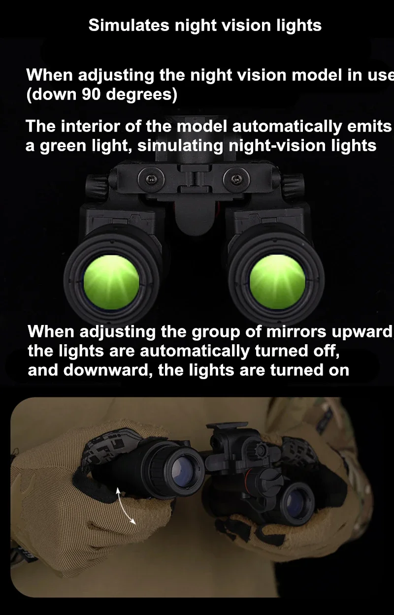 Simula luces de visión nocturna: cuando el modelo de visión nocturna ajustable está en uso (90 grados hacia abajo), se emite automáticamente una luz verde desde el interior del modelo. Simula la luz de un dispositivo de visión nocturna.