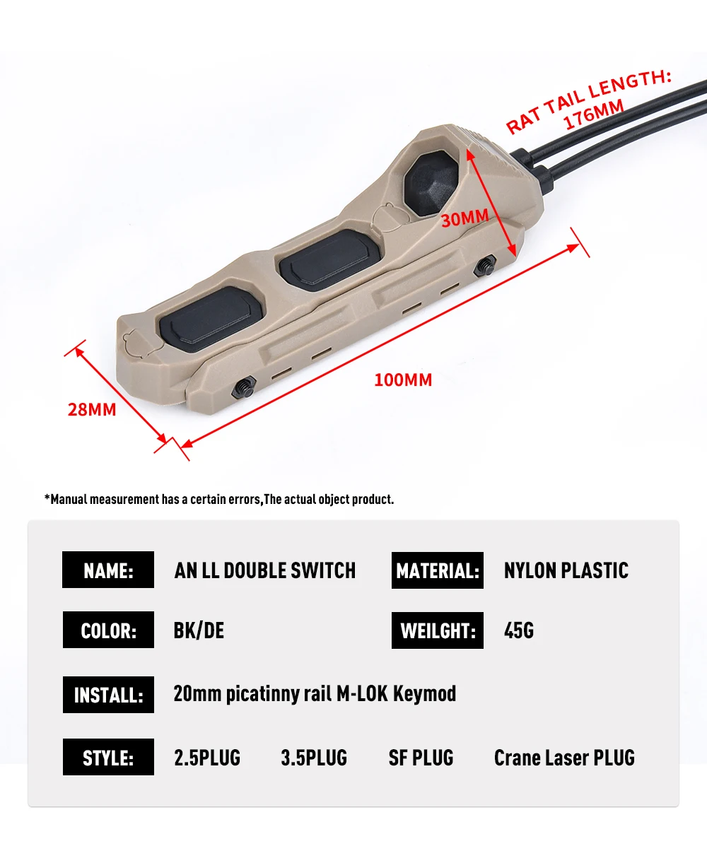 El interruptor de presión de doble función Airsoft Axon ofrece una opción de control versátil para la luz de su arma, mejorando la precisión y la eficiencia.