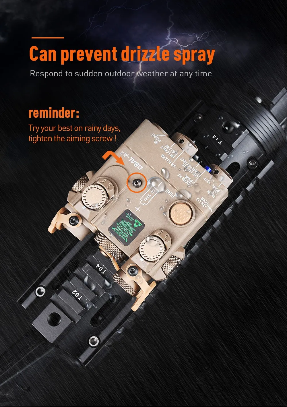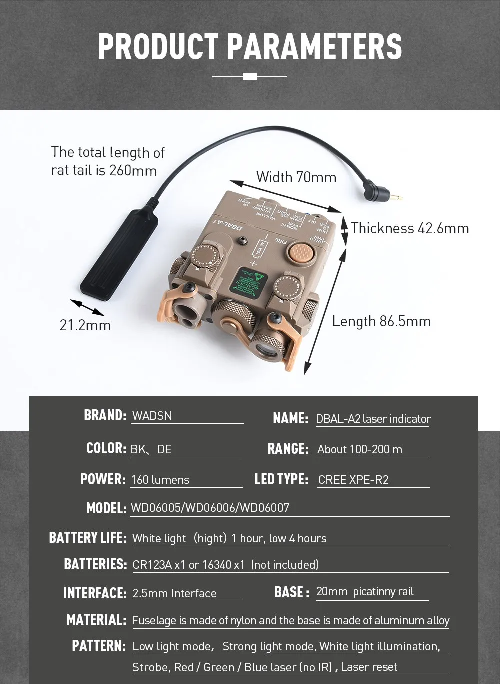 Airsoft-DBAL-A2 táctico, punto rojo, verde, azul, LED blanco, linterna estroboscópica, pistola de arma IR, apto para riel de 20mm, Láser de caza