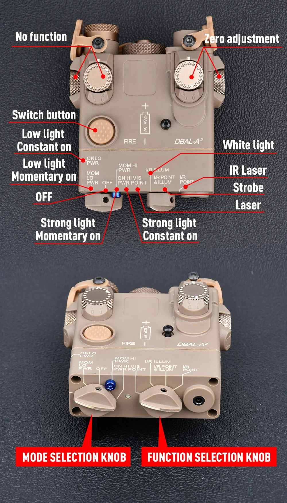 Airsoft DBAL-A2 verde azul rojo punto láser puntería luz estroboscópica blanca LED WADSN caza IR luces de visión ajuste DBAL PEQ Picatinny Rail