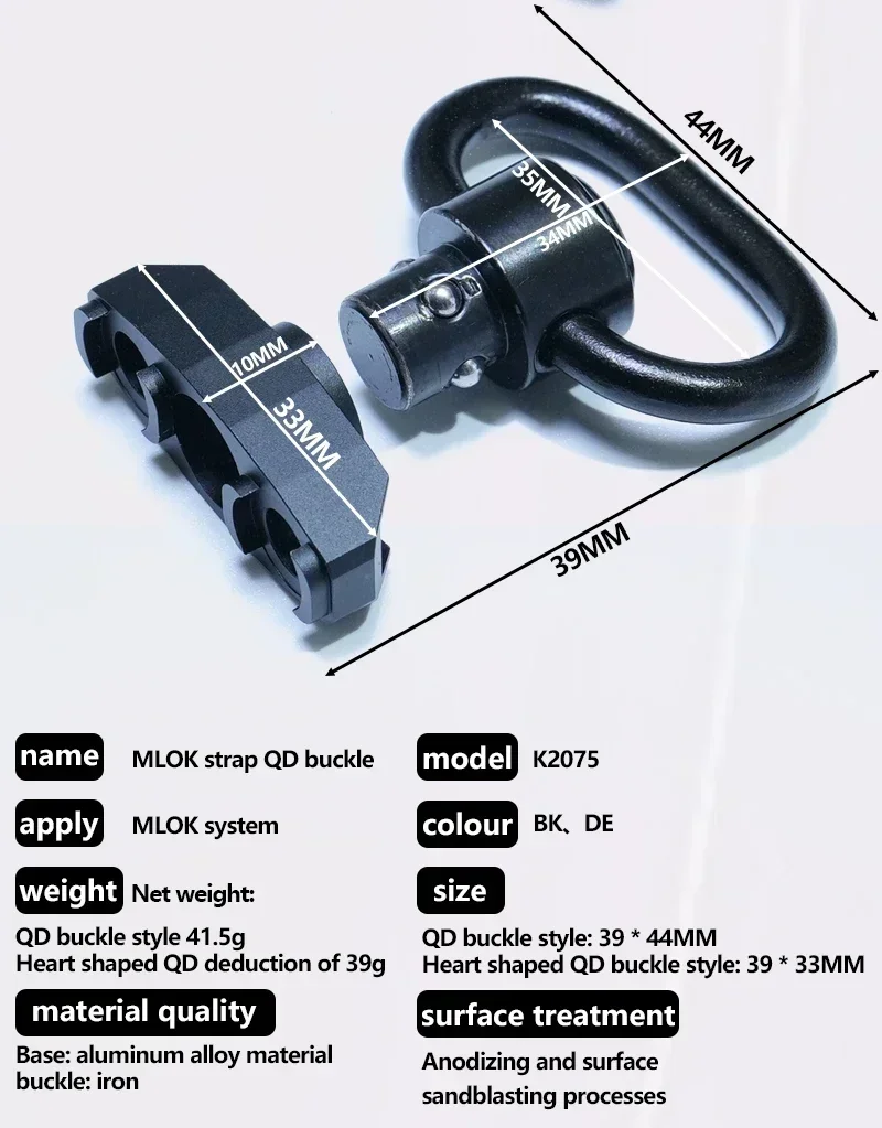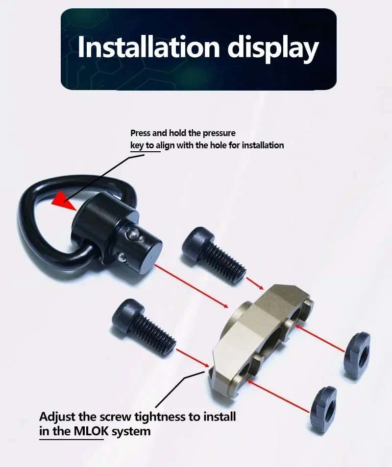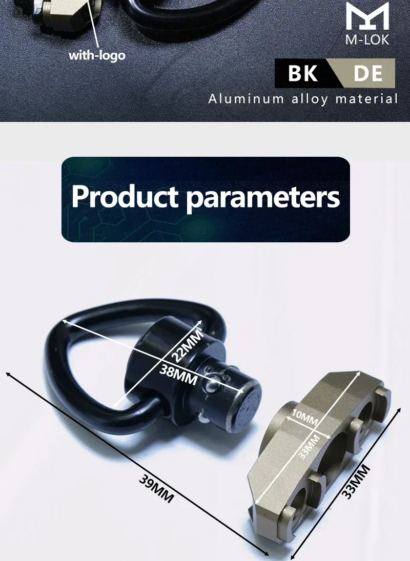 Airsoft-eslinga giratoria de 1,25 pulgadas para Rifle táctico, hebilla giratoria de 360 grados, compatible con sistema MLOK, Base de botón de liberación rápida QD