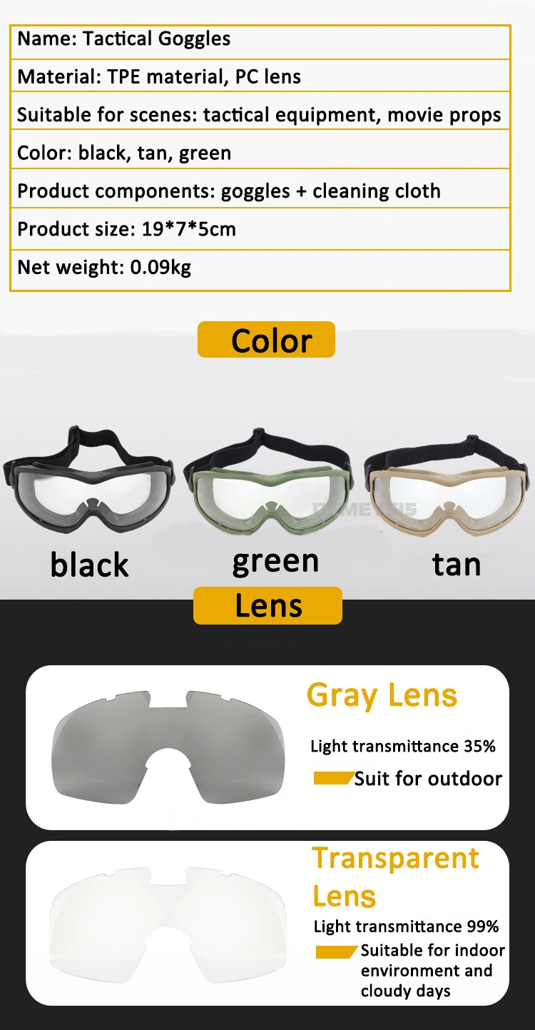 Gafas Airsoft, gafas protectoras tácticas de Paintball, a prueba de viento, caza al aire libre, senderismo, gafas para motocicleta