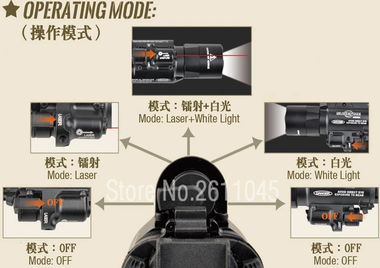 1x linterna LED con riel Picatinny láser rojo