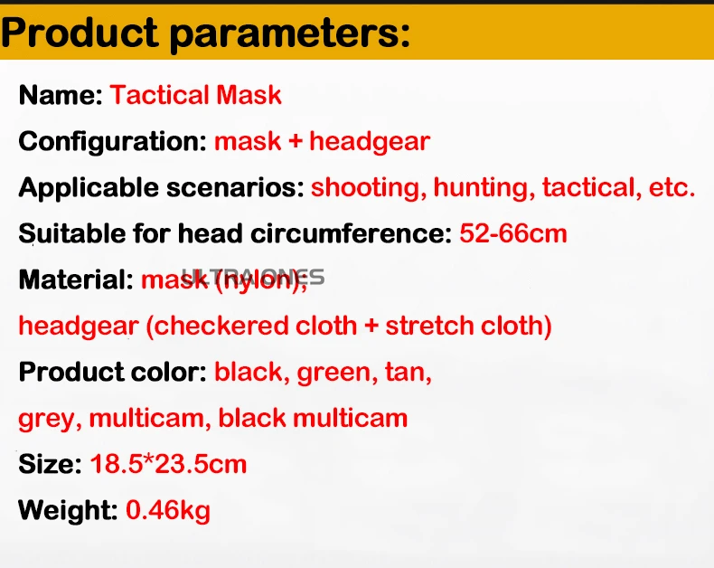 ● Material: máscara de nailon, casco de tela elástica