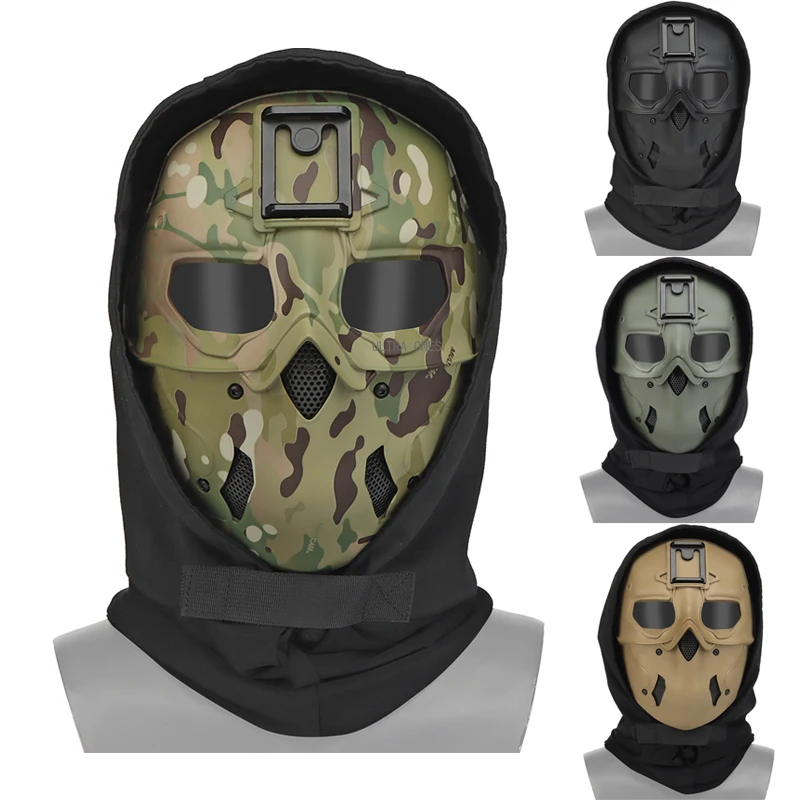 Máscara táctica Airsoft con tocado traje de cara completa máscara protectora de tiro de caza Paintball Cs máscaras de entrenamiento del ejército camuflaje de combate
