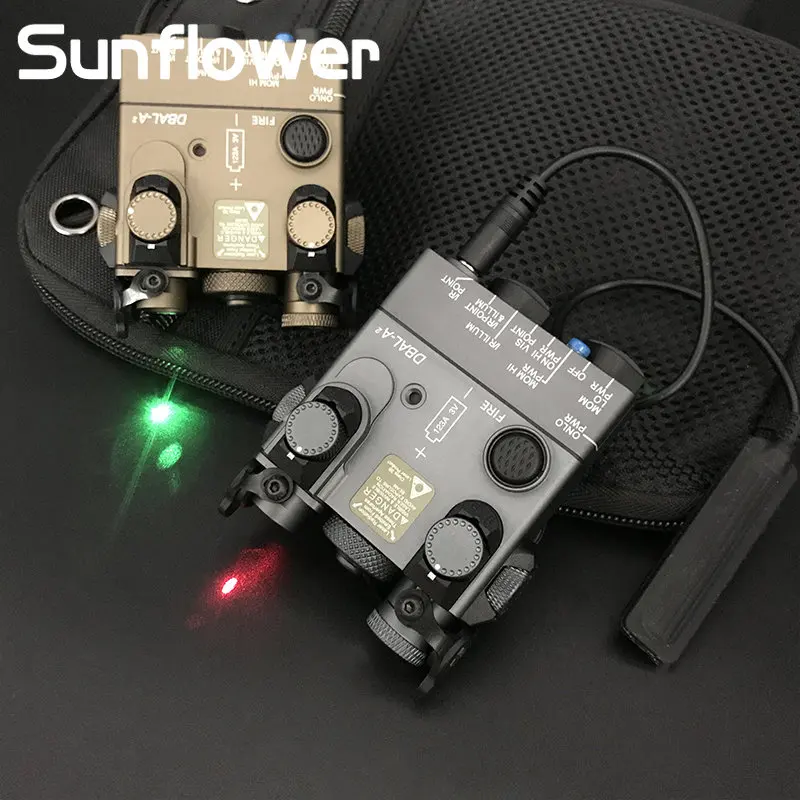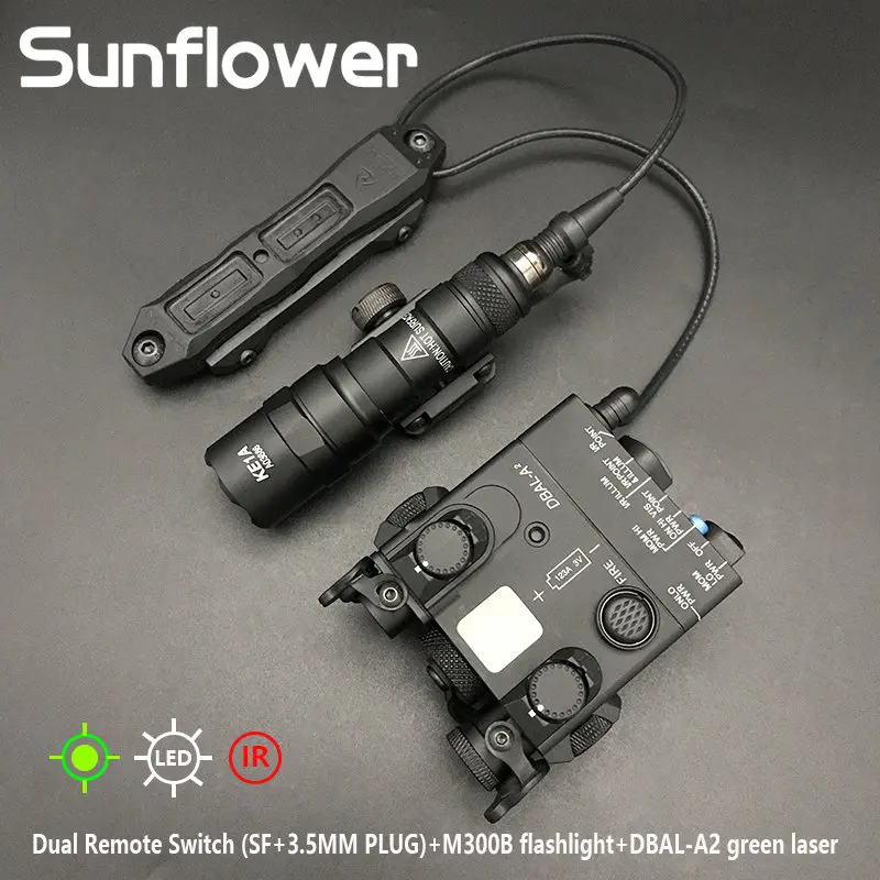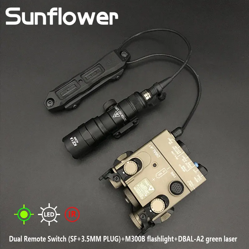 Airsoft táctico DBAL A2 arma láser luz rojo punto verde mira puntero láser Surefir M300B linterna lámpara con interruptor de presión Dual