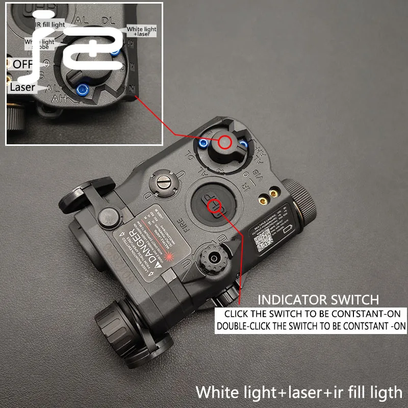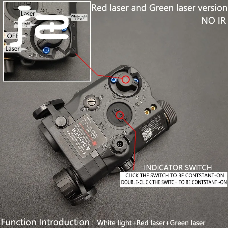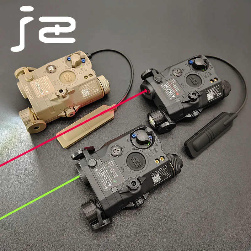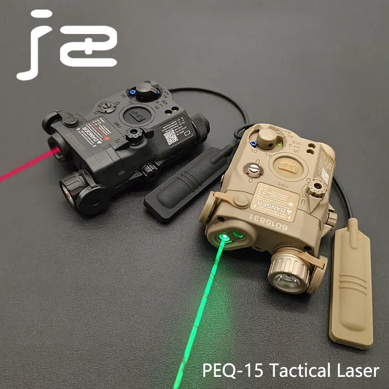 Airsoft táctico PEQ15 puntos rojos y verdes arma de puntería luz de relleno IR indicador láser apto para riel de 20mm luz de explorador de caza láser doble