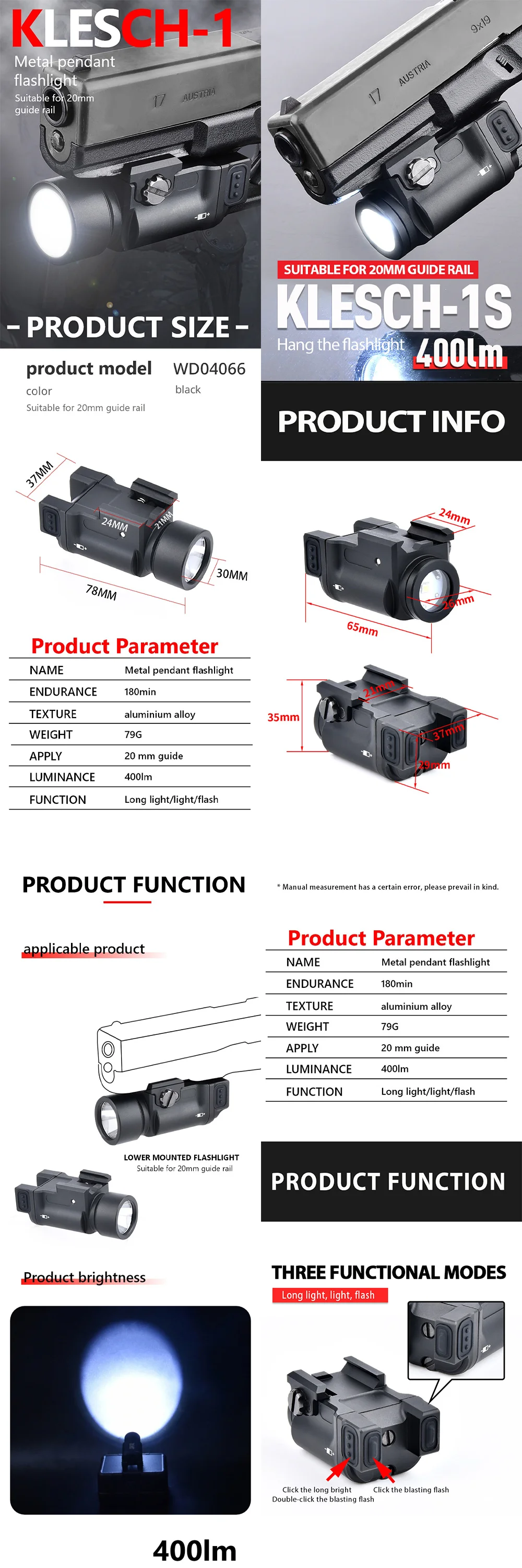 Airsoft Zenitco KLESCH-1 1S GEN.2.0 linterna táctica de Metal LED para Rifle de caza, luz de exploración de 20mm para riel Picatinny