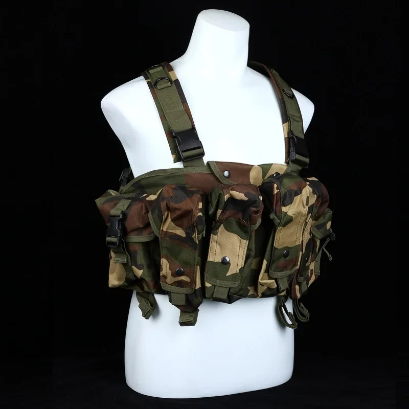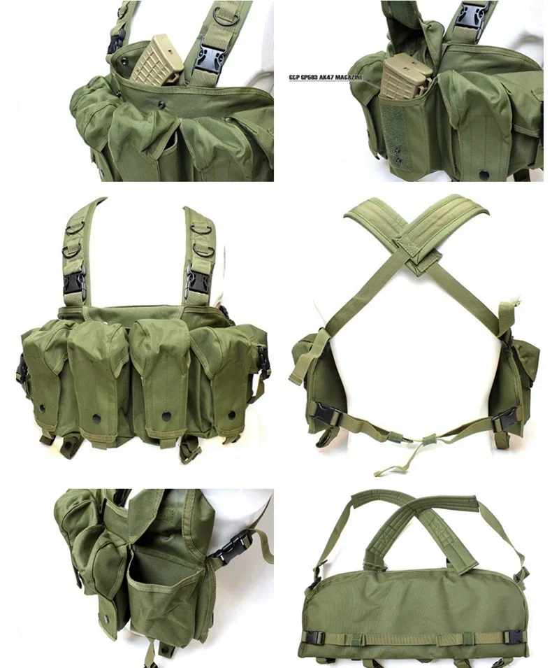 4 bolsas para revistas AK frontales, pueden contener hasta dos revistas AK cada una, lo que permite un total de 8 revistas.