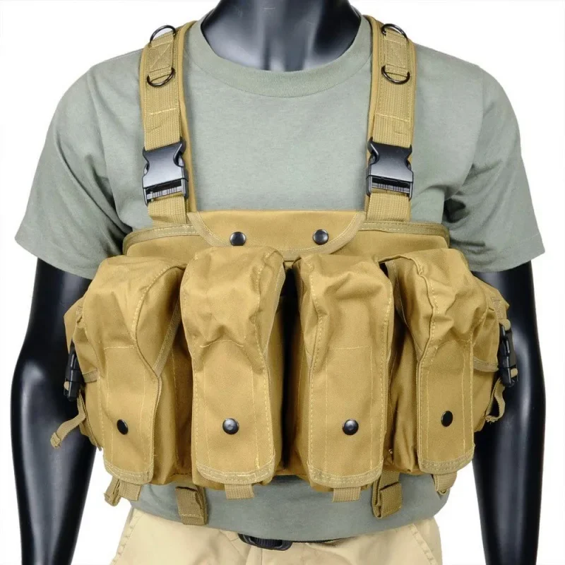 4 bolsas para revistas AK frontales, pueden contener hasta dos revistas AK cada una, lo que permite un total de 8 revistas.