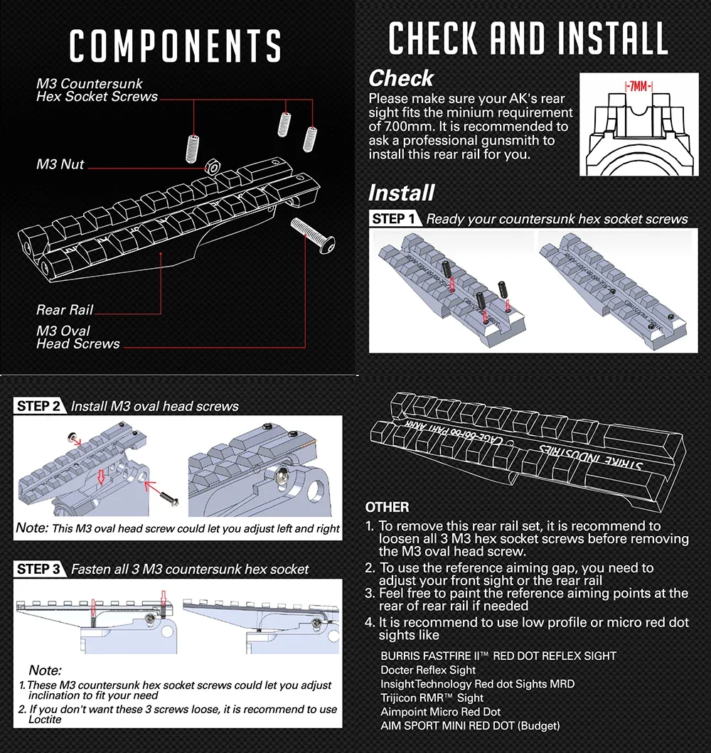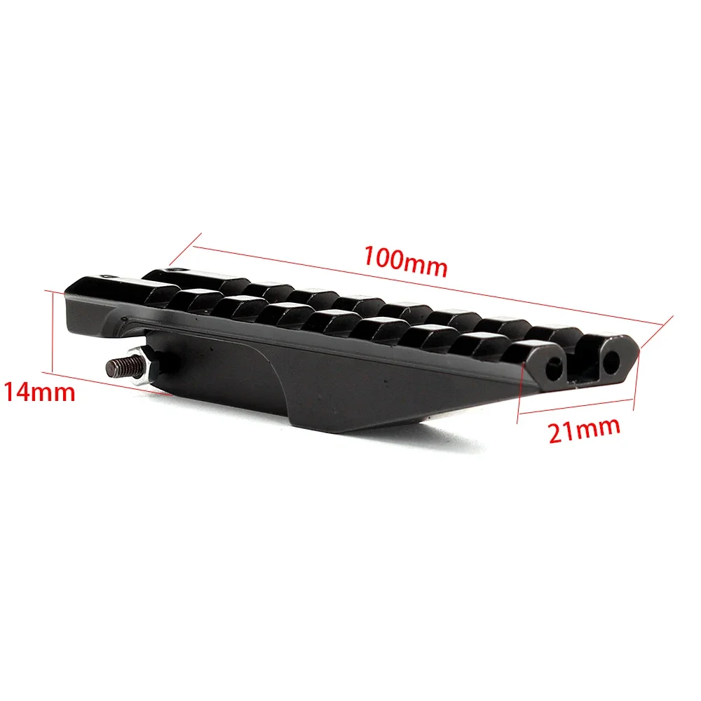 El diseño único permite un ajuste de nivel horizontal y vertical para garantizar que su óptica esté alineada correctamente con el orificio.Como beneficio adicional, cuenta con una mira trasera de respaldo como puntería de referencia o uso de emergencia en caso de que la óptica falle.