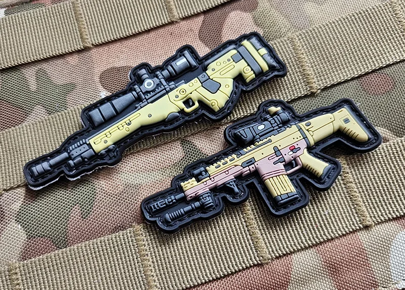 Q-version Arma AK47 Parches de gancho y bucle Brazalete de PVC Mochila táctica Casco Army Fan Moral Badge