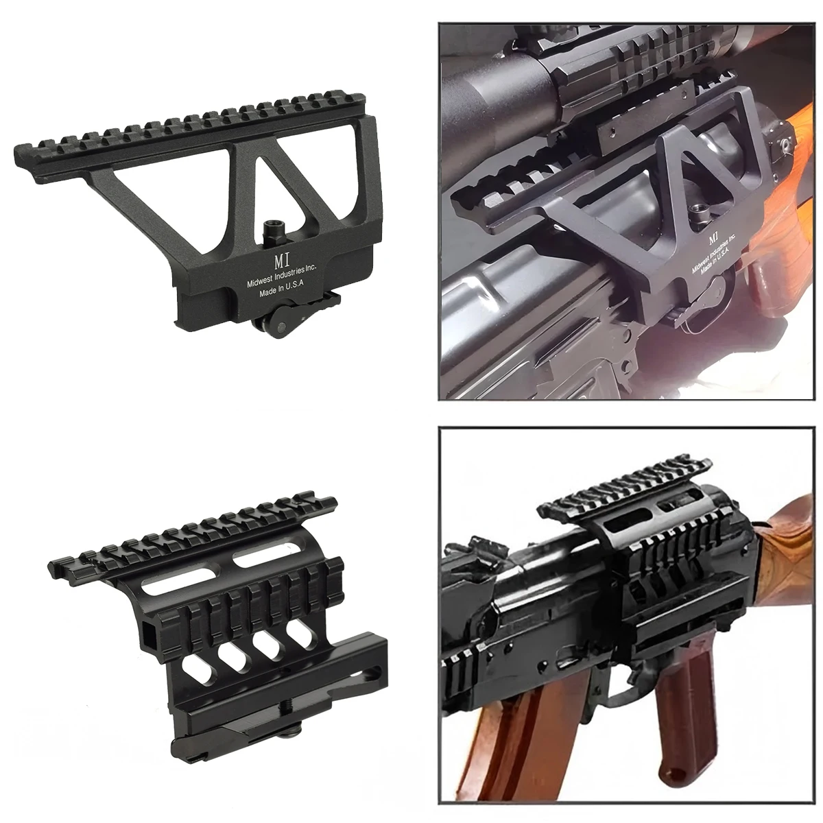 Se fija directamente a la placa lateral (placa lateral no incluida)Se fija fácilmente a su AK con una interfaz de riel receptor AK incorporada. Riel de especificaciones 1913 Mil de calidad extremadamente alta, marcado en T para ubicaciónMecanizado con precisión a partir de aluminio de calidad aeronáuticaPalanca desmontable rápida para que el soporte se pueda bloquear o quitar de la pistola de manera sólida/rápida a mano sin necesidad de herramientas 16 ranuras en el riel superior