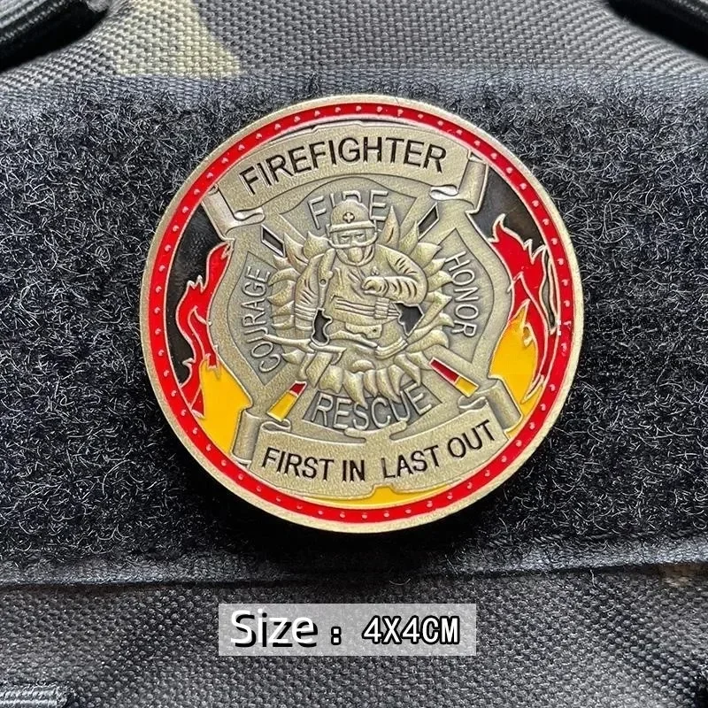 Alarma de incendio, Honor, bombero, insignia de moral de Metal, brazalete, emblema de gancho y bucle, parche táctico valiente y impecable, pegatinas para mochila