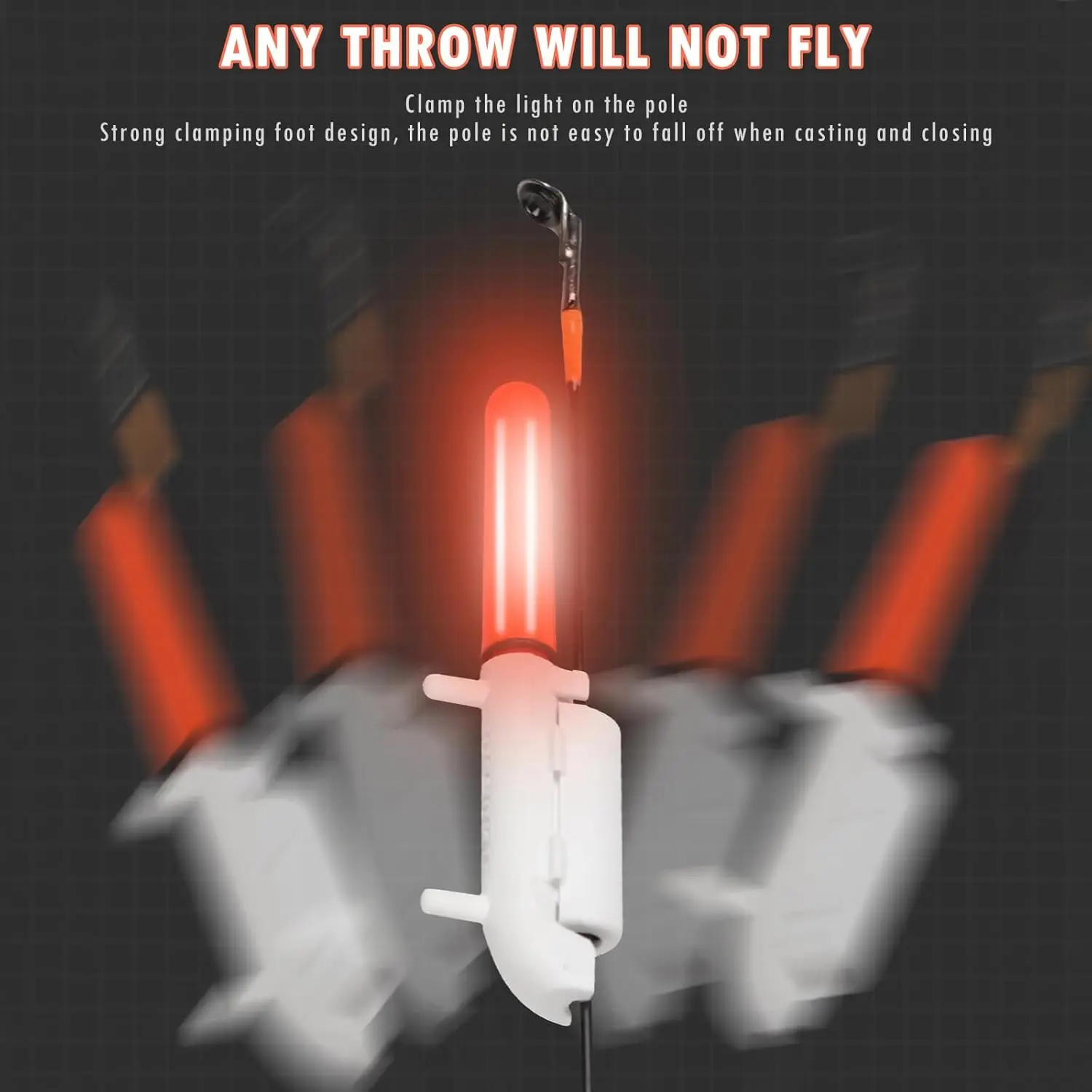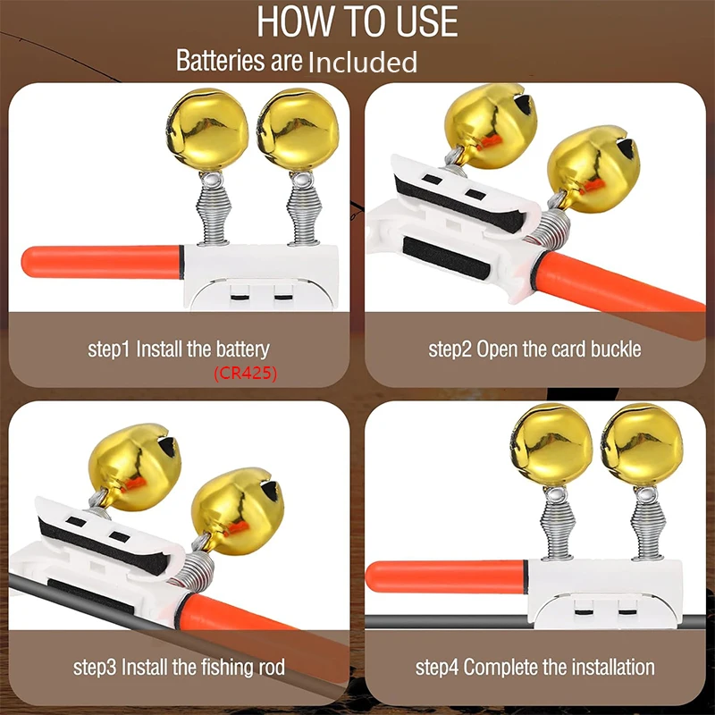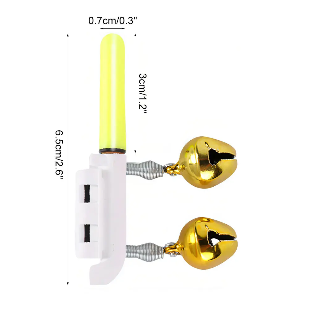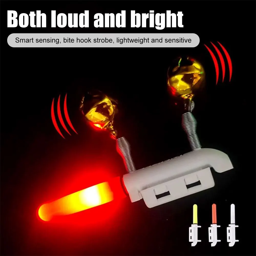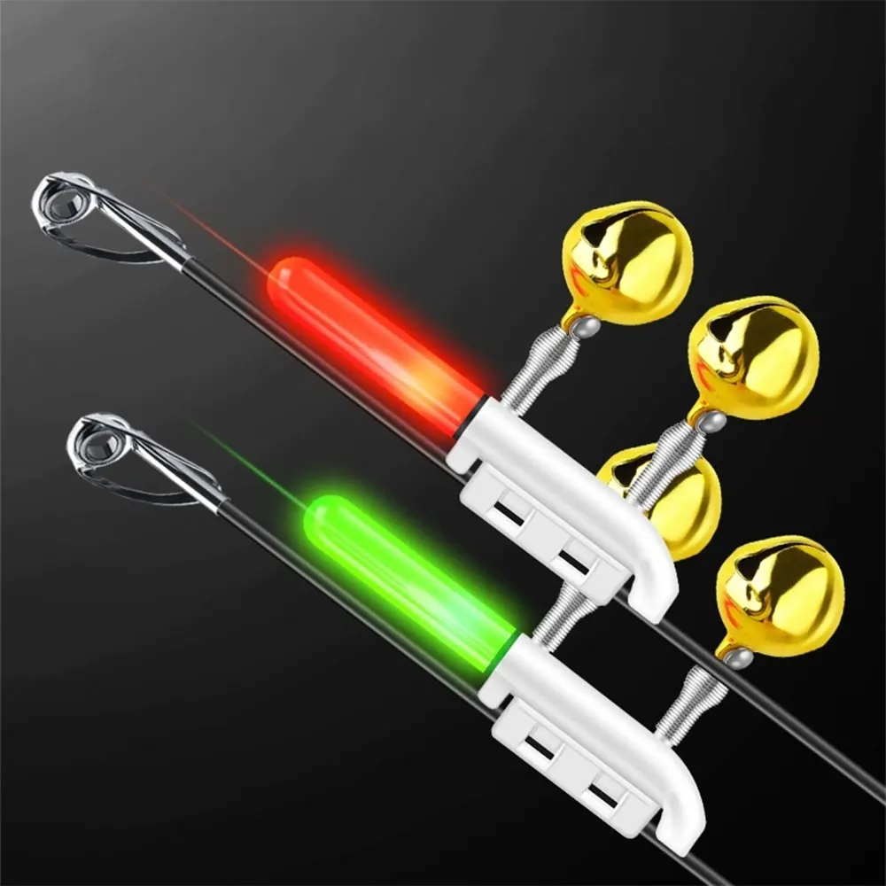 3. 【Sigue brillante】 esta campana de alarma de pesca puede iluminarse durante mucho tiempo.Cuando el pez muerde el anzuelo, las dos campanas trepen violentamente para recordarle que el pez ha tragado el cebo, lo que facilita la pesca.Las barras luminosas de pesca con barra luminosa flotante son perfectas para la pesca nocturna o temprano en la mañana.(Nota: Las luces roja y verde están siempre encendidas, y el otro modelo que cambia de color solo se iluminará cuando un pez muerda el anzuelo, momento en qué aparecen las luces roja y verde alternativamente).