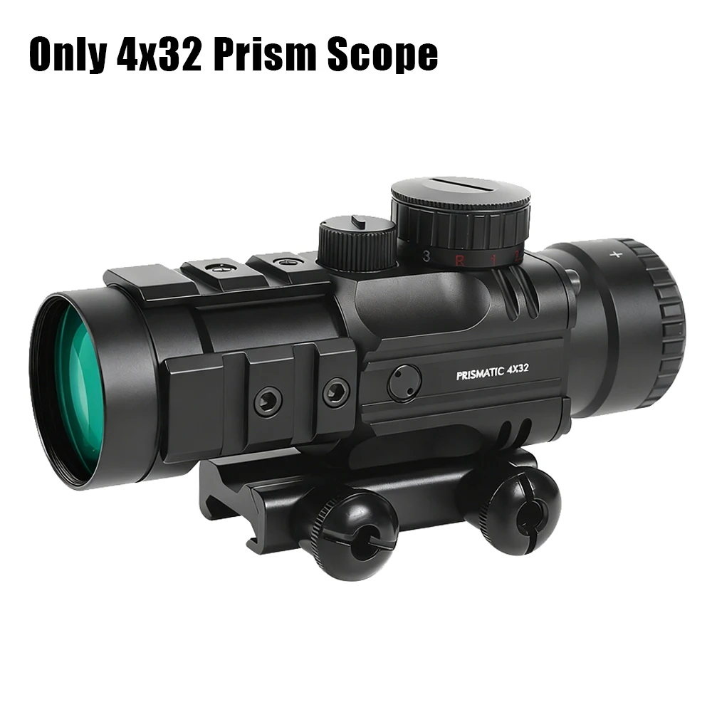Alcance de rifle 4x32 con mira de punto rojo de 3 MOA y láser verde para rieles de 20 mm, pistolas largas, combinación de alcance de telémetro iluminado RGB