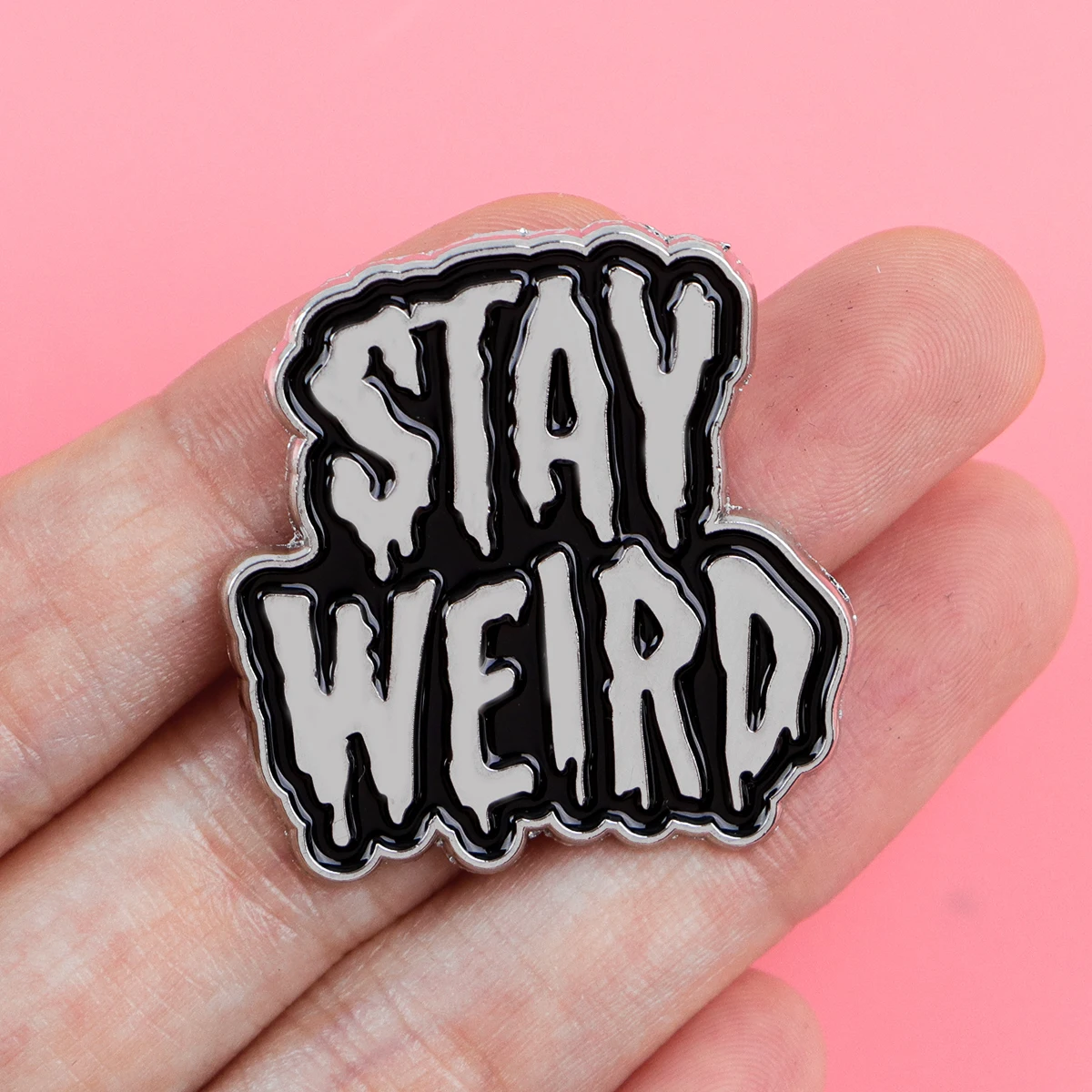 Alfileres esmaltados STAY WEID, broche con citas de Halloween, Pin de solapa de Metal, insignia, accesorios para mochila, joyería, regalos para amigos
