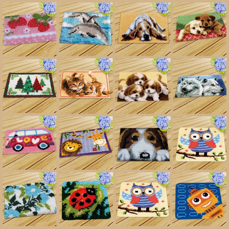 Alfombra de animales, gatos y perros, paquete de botones Smyrna, gancho de pestillo de flores, almohada bordada, Foamiran para juego de alfombras de costura