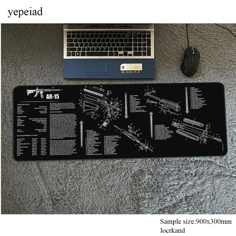 Alfombrilla negra para ratón, 900mm x 300mm, Acerca de AR-15 AK47 MP5, piezas de pistola, decora tu escritorio, ratón de oficina, ratón de juego, ratón de radiación suave