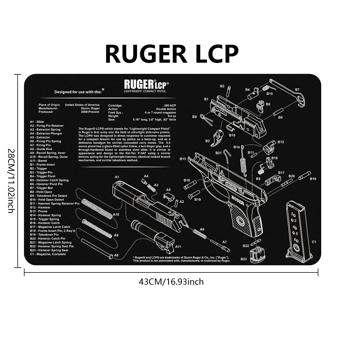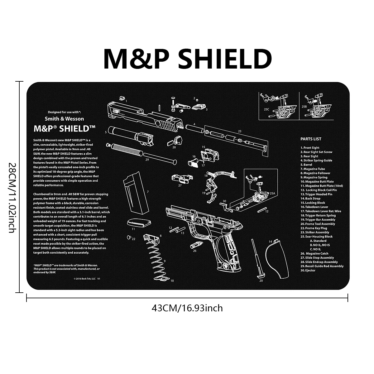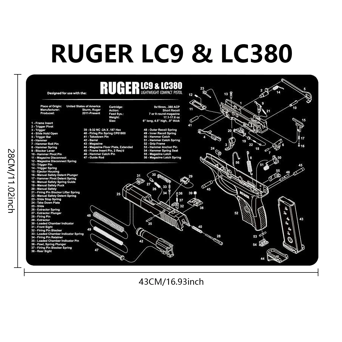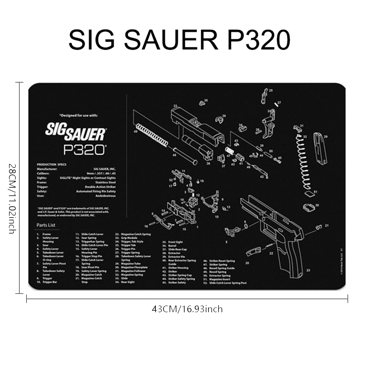 Alfombrilla de goma para limpieza de armas, diagrama de piezas para alfombrilla de ratón para Walther PPQ RUGER LC9 y LC380 M & P SHIELD Punisher SIG SAUER P320 P365