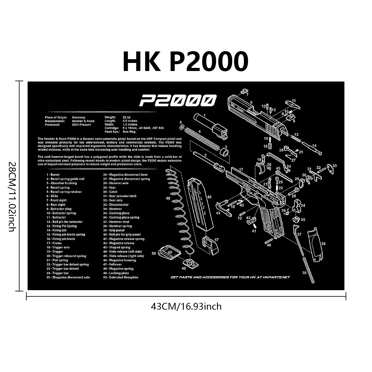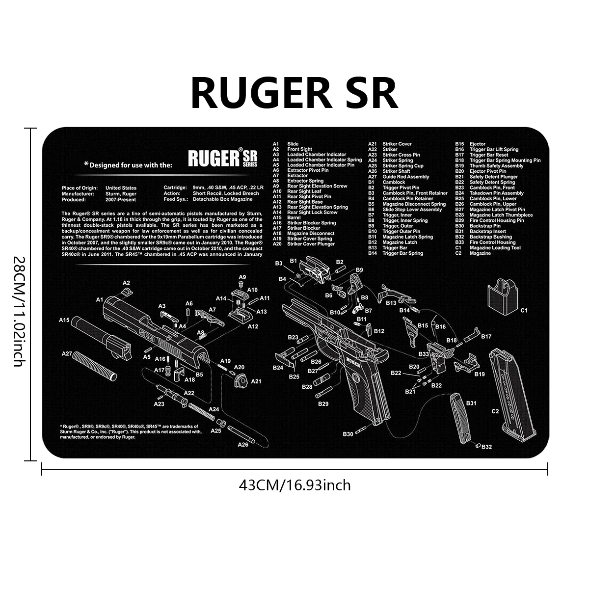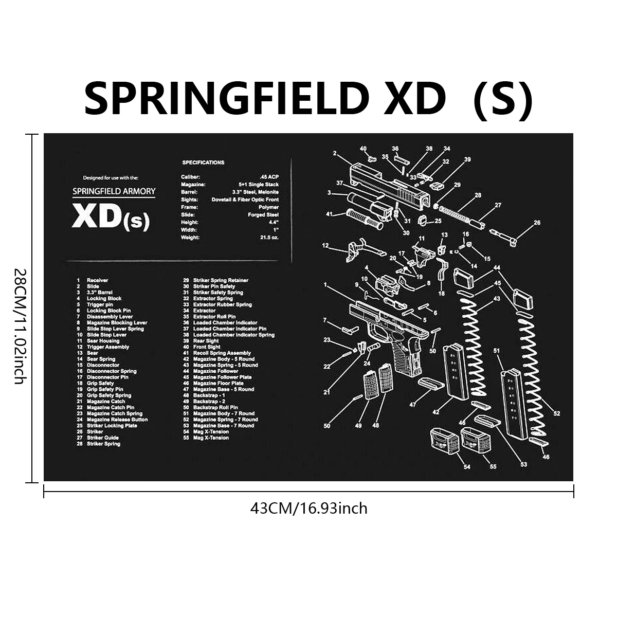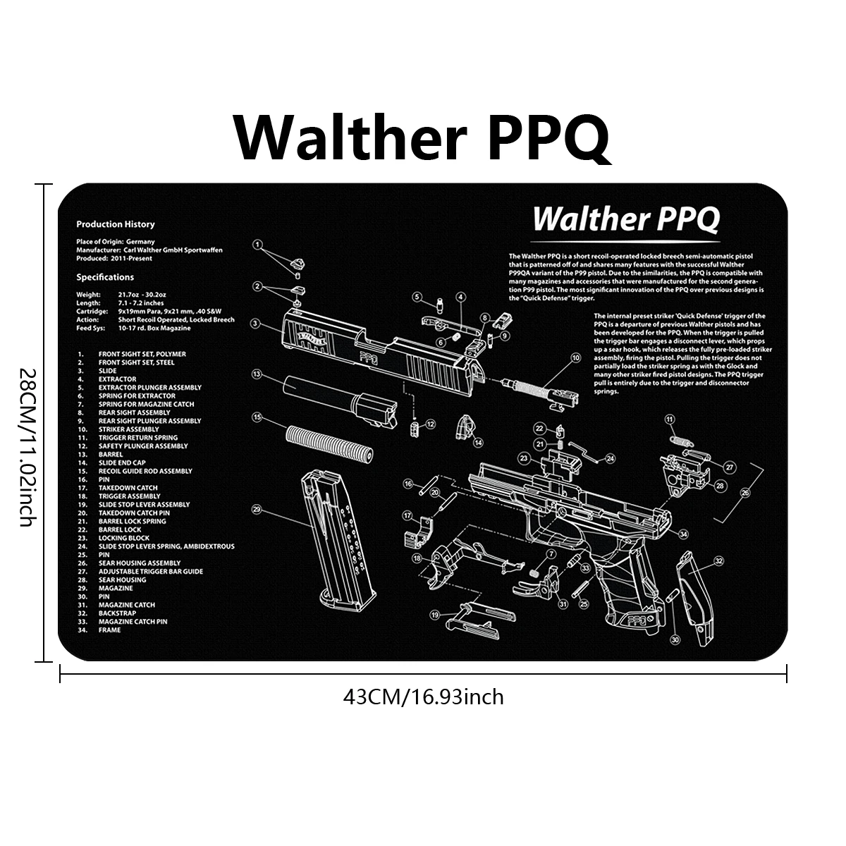 Alfombrilla de goma para limpieza de armas, diagrama de piezas para alfombrilla de ratón para Walther PPQ RUGER LC9 y LC380 M & P SHIELD Punisher SIG SAUER P320 P365