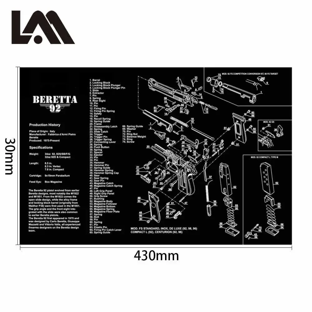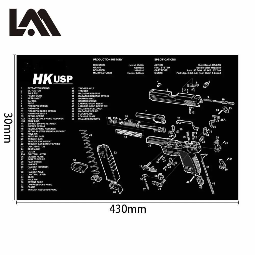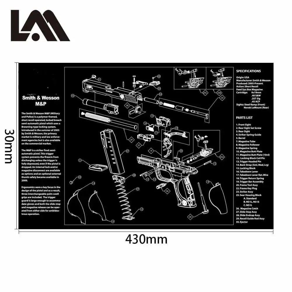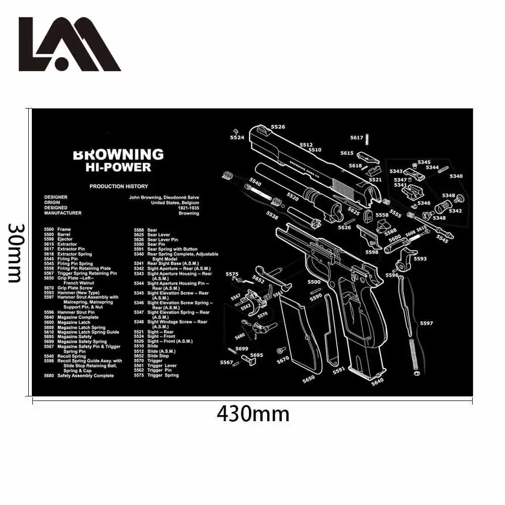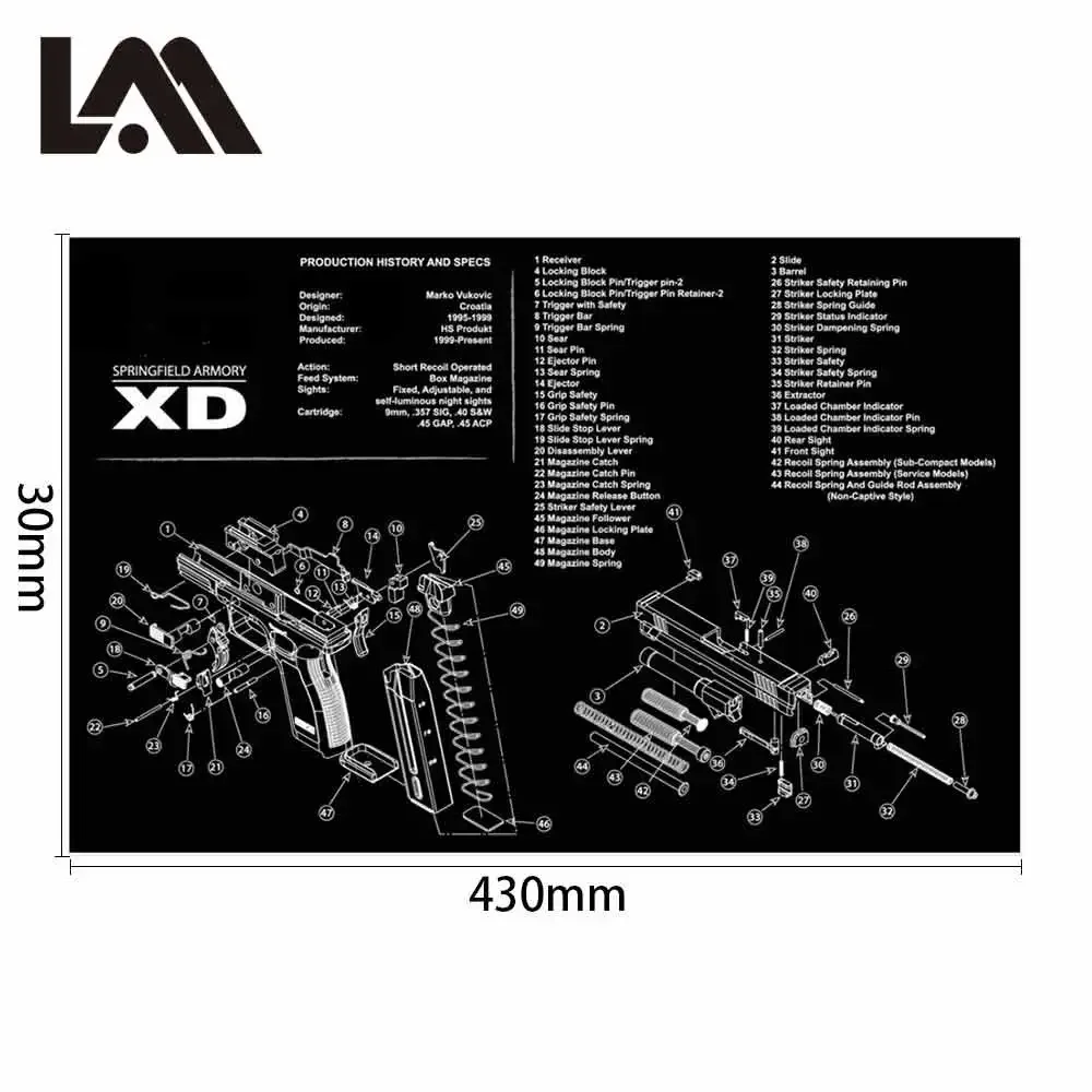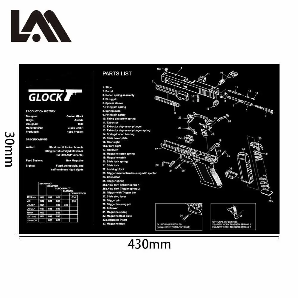 Alfombrilla de goma para limpieza de pistola Glock con diagrama de piezas e instrucciones, alfombrilla de banco para armeros, alfombrilla de ratón para Colt 1911