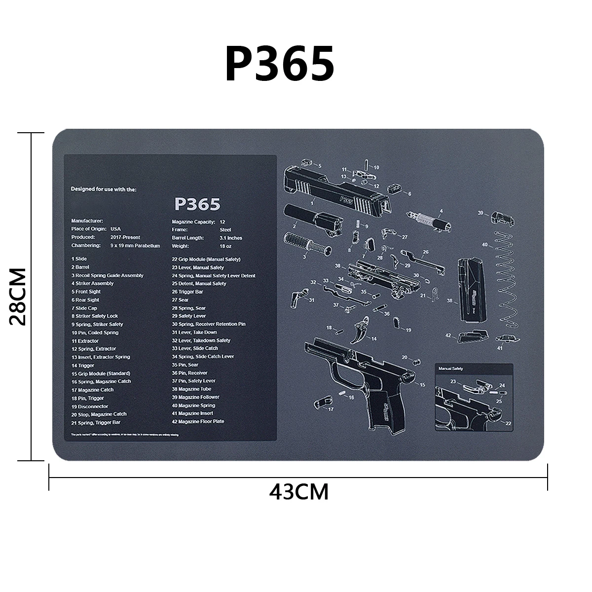 3.Fácil de usar: esta alfombra de limpieza para pistola viene con una descripción general de la historia de la pistola, así como un diagrama de piezas simple de seguir que representa su pistola y rueda para un fácil almacenamiento.