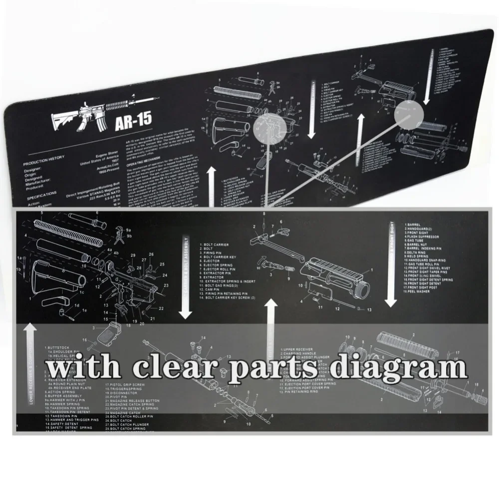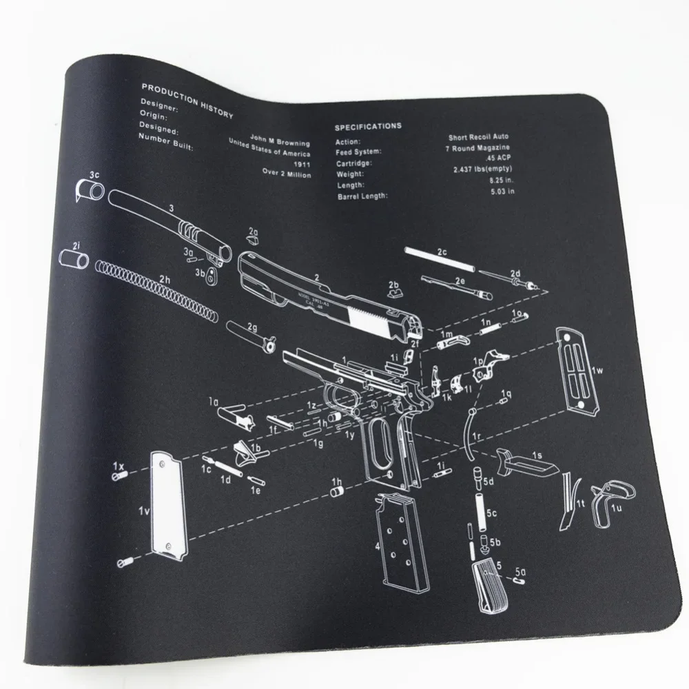 Rendimiento: Con una capa protectora, incluso si hay gotas de aceite y agua en el tapete de limpieza, podemos asegurarnos de que el producto esté como nuevo después de limpiarlo.Con una impresión clara del diagrama de la pistola, puedes poner tus accesorios en él de forma ordenada.