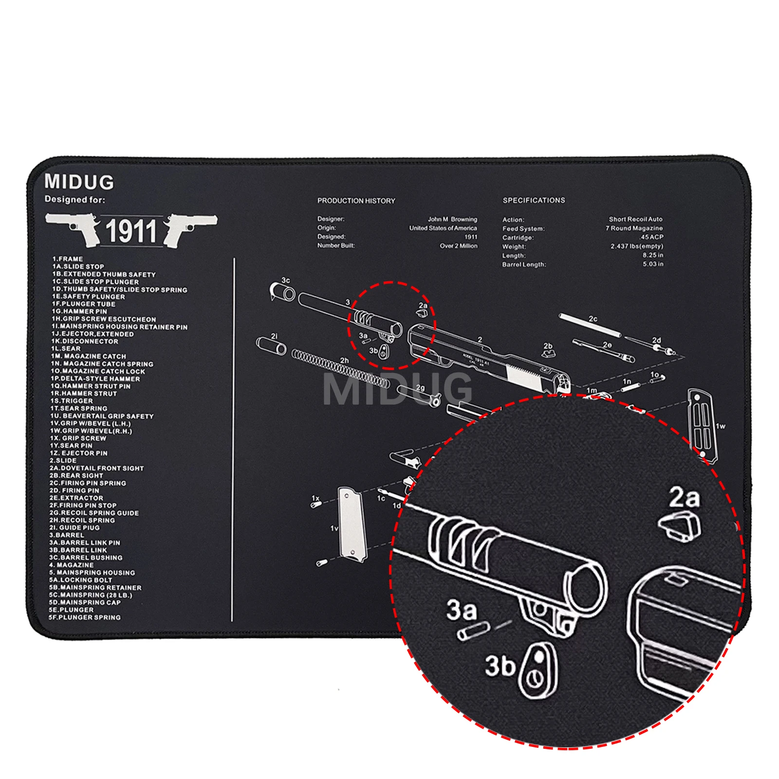 1. La alfombrilla de limpieza de armas es ideal para proteger tanto su escritorio como sus armas de fuego al desmontar y limpiar su arma.Incluso se puede utilizar como alfombrilla de ratón para juegos.Tamaño: 16,30'' X 10,98'', 1/8''(5 mm) de grosor, tiene suficiente espacio para armas pequeñas.Fácil almacenamiento.Simplemente enróllelo.