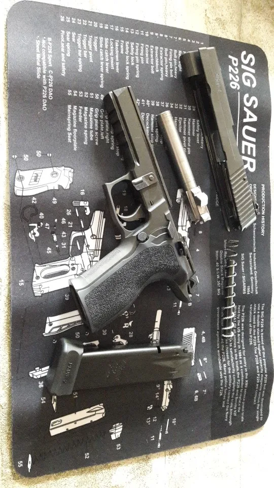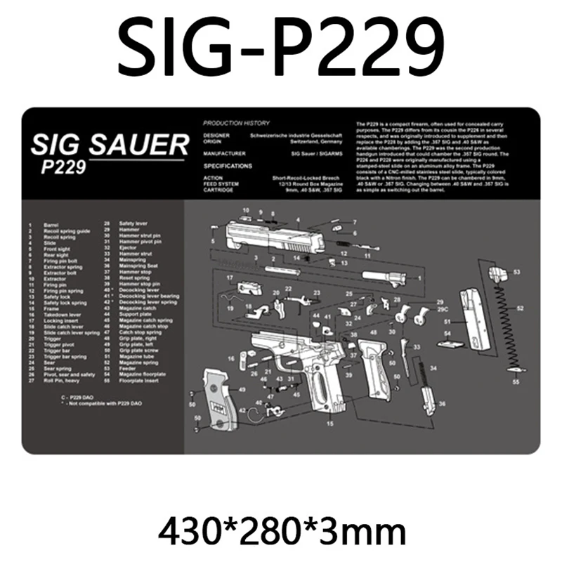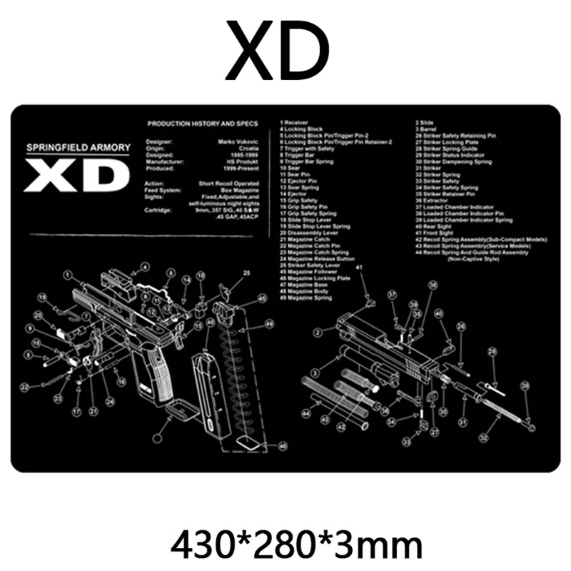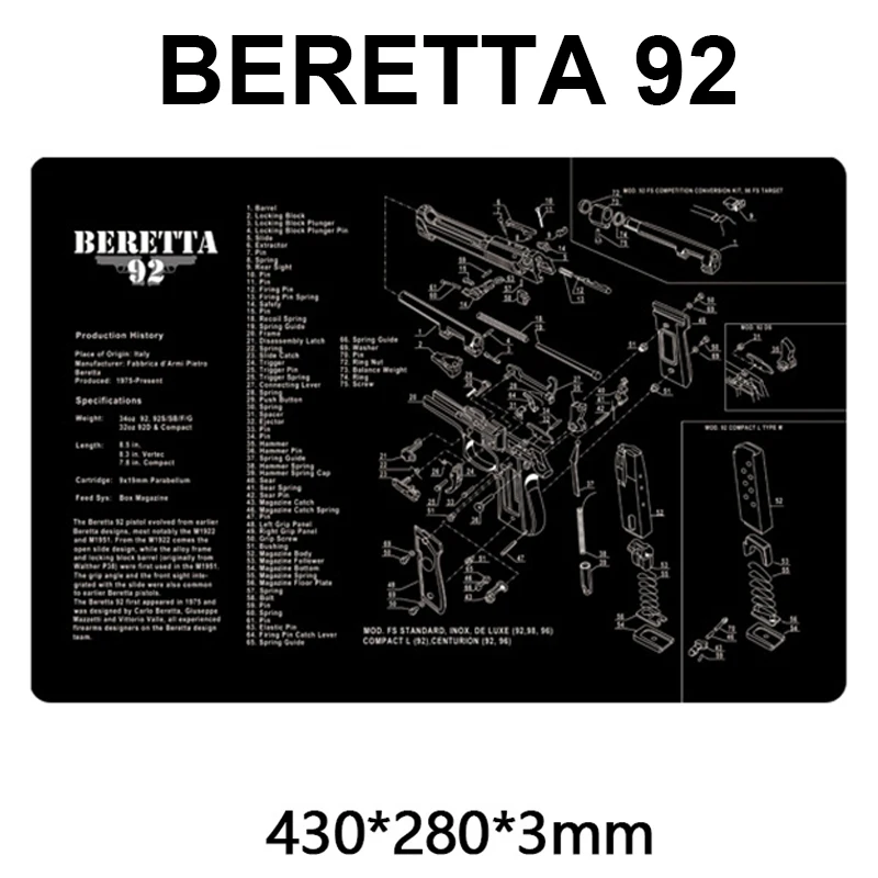 - Con una capa protectora, incluso si hay gotas de aceite y agua en la alfombra de limpieza, podemos asegurarnos de que el producto esté como nuevo después de limpiarlo.Con una impresión clara del diagrama de la pistola, puedes poner tus accesorios en él de forma ordenada.
