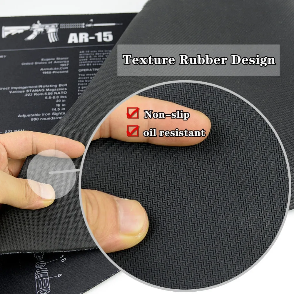 Rendimiento: con una capa protectora, incluso si hay gotas de aceite y agua en la alfombra de limpieza, podemos asegurarnos de que el producto esté como nuevo después de limpiarlo. Con una impresión clara del diagrama de la pistola, puede poner sus accesorios en él ordenadamente.