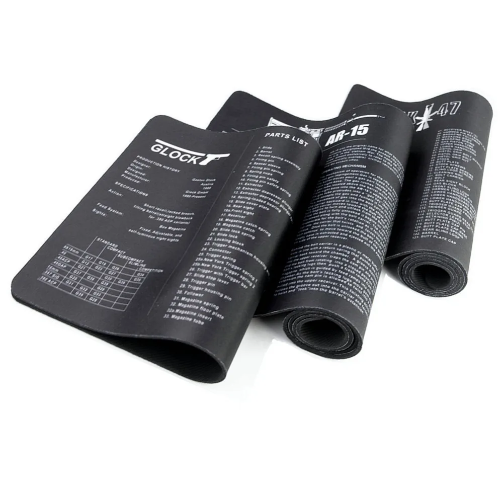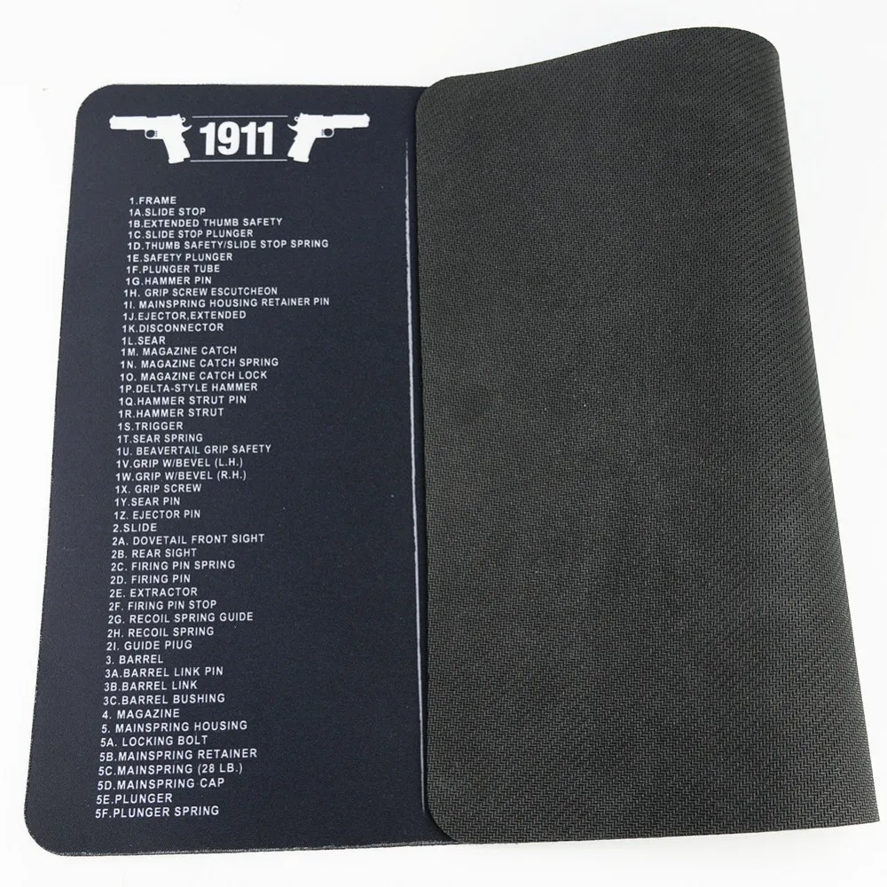 Tamaño: la alfombrilla de limpieza de pistola corta tamaño 430mm x 280mm, 3mm de espesor, el tamaño largo 915mm x 305mm x 3mm, y tiene buena resistencia a la presión, lo que ayudará a proteger los accesorios de la pistola.