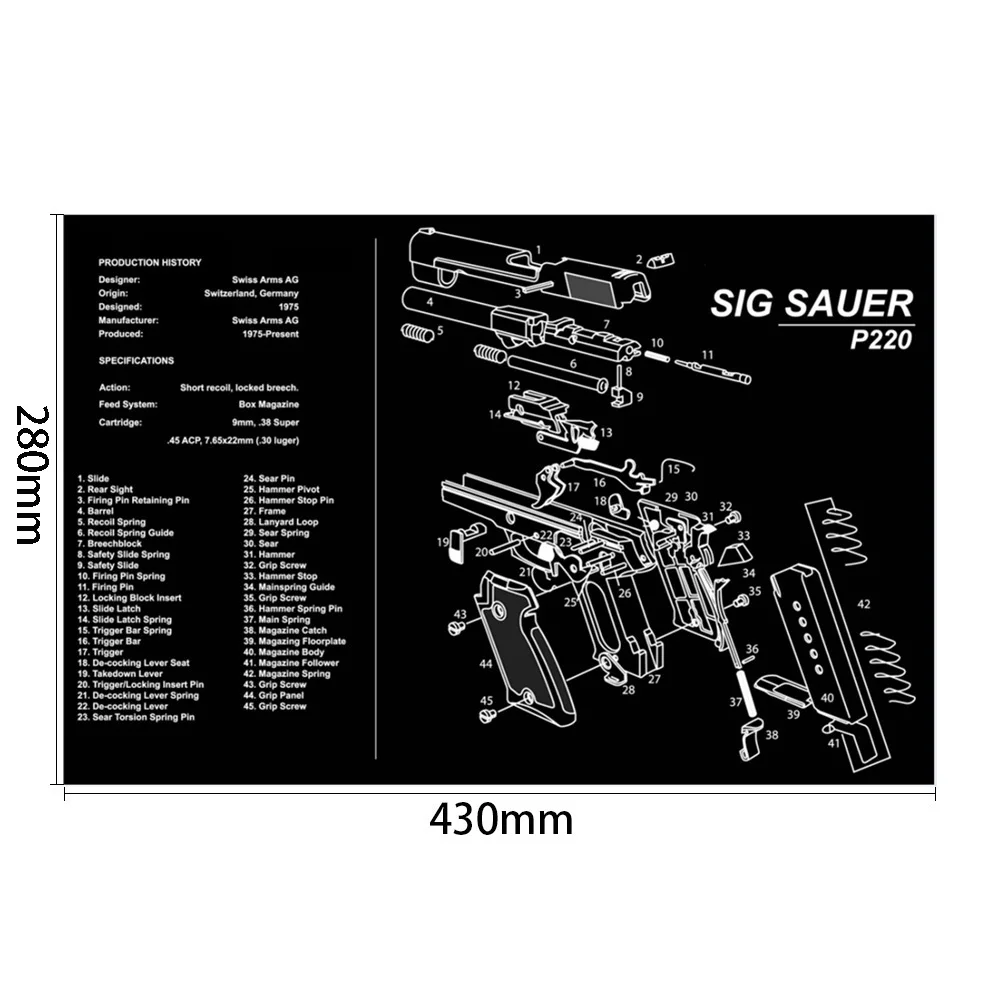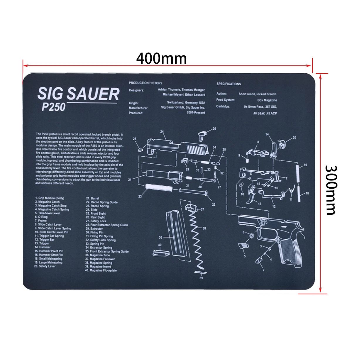 Kit de alfombrilla de limpieza para pistola HK USP Remington 870 Sig Sauer P220 P226 P229 P250 Springfield XD S & W M & P Instrucciones del diagrama de la alfombrilla de ratón