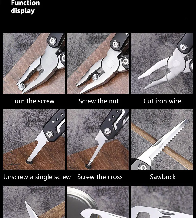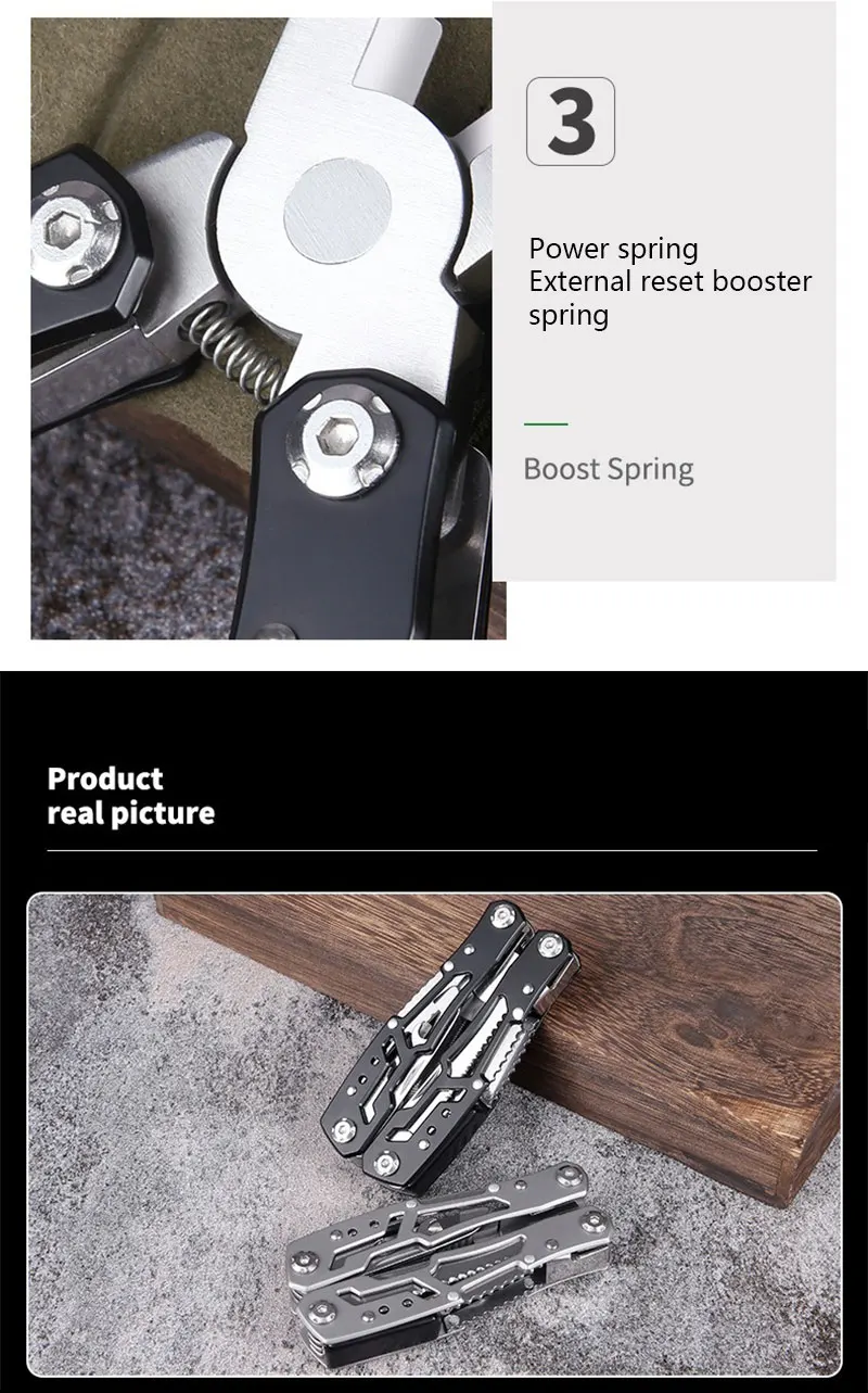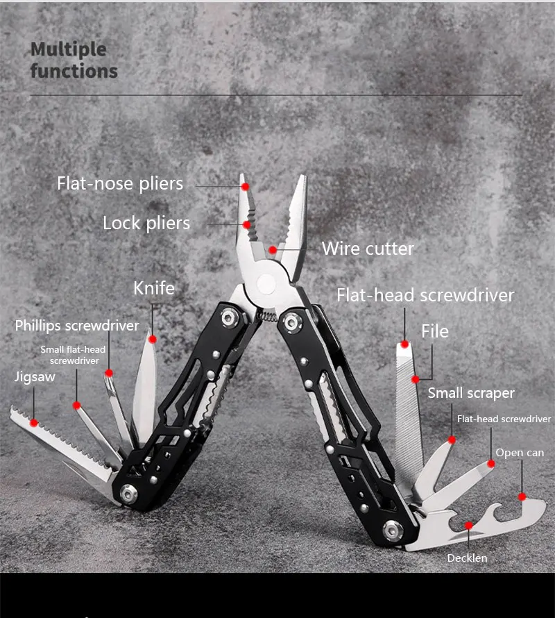 Alicates multifuncionales de acero, herramienta plegable para exteriores, portátil, equipo de emergencia para coche