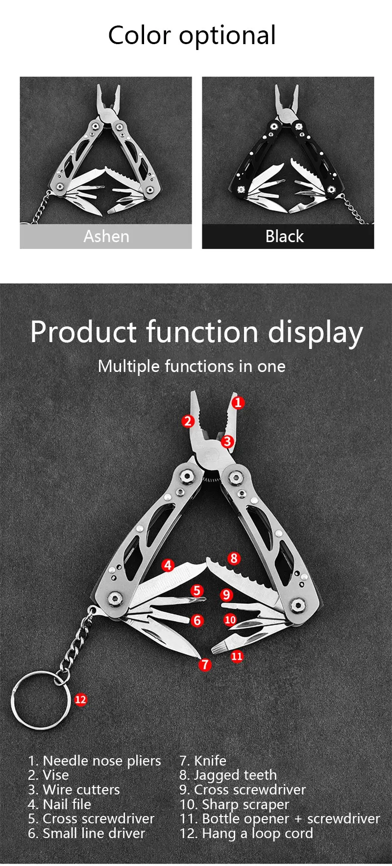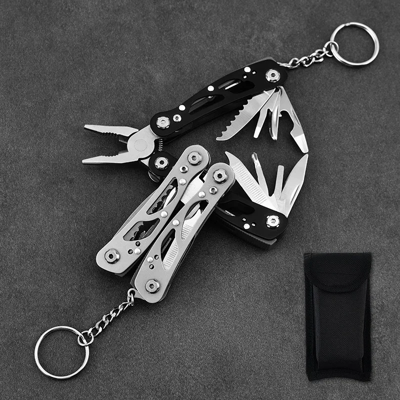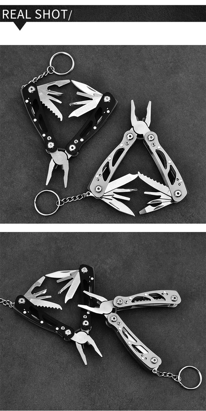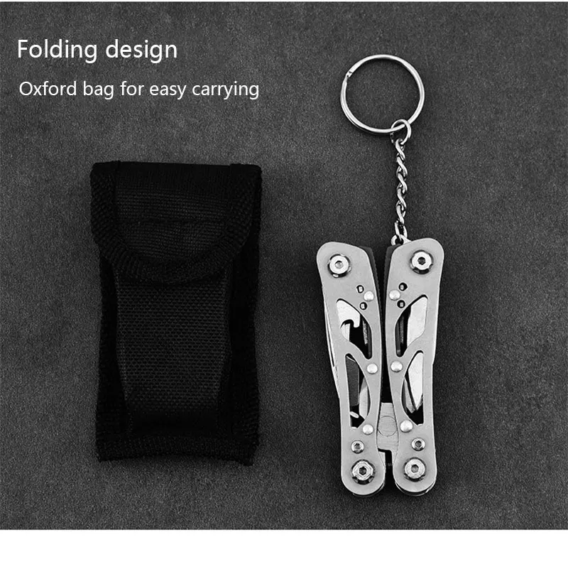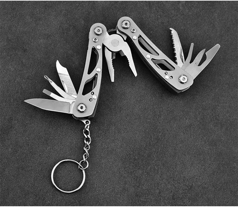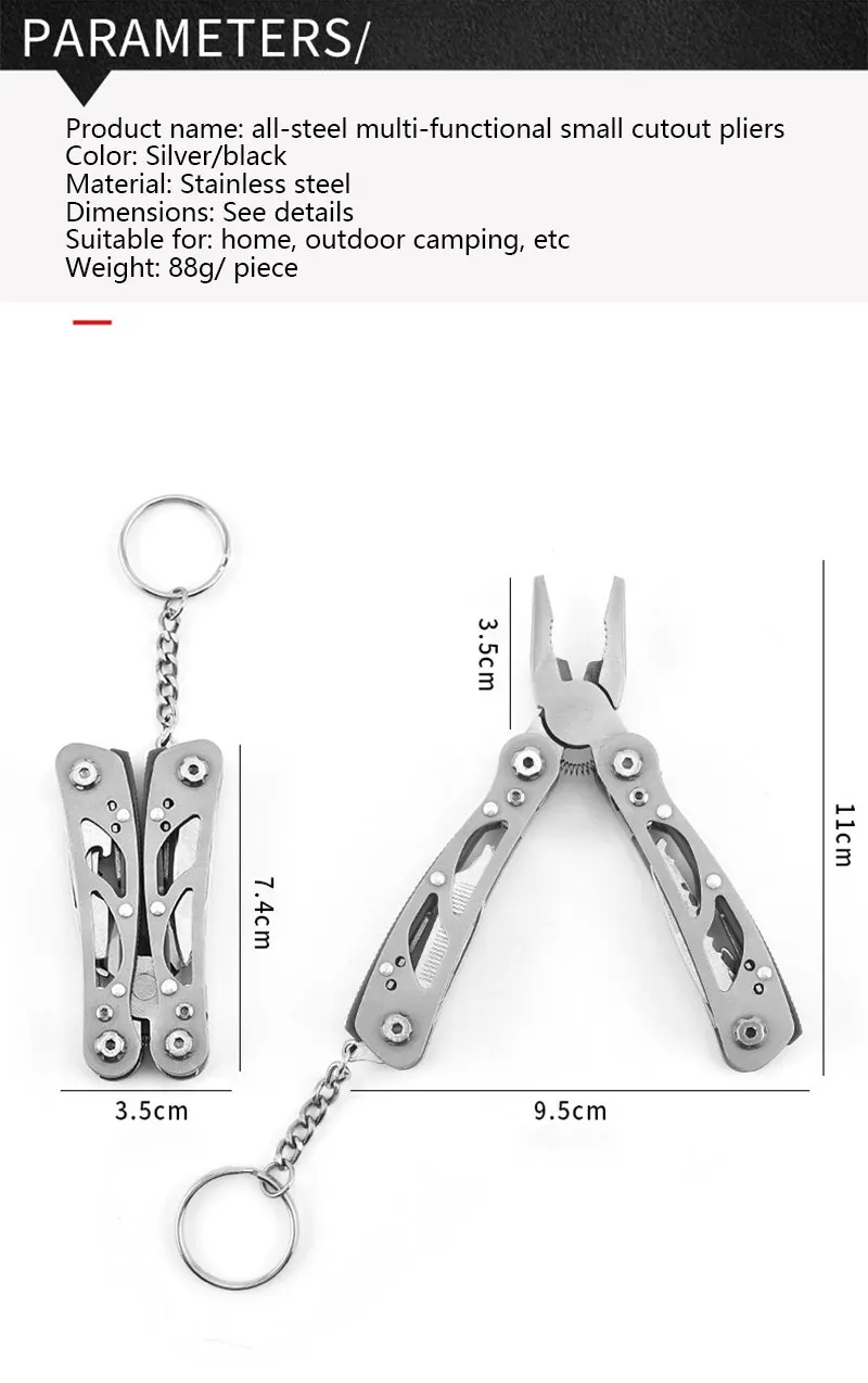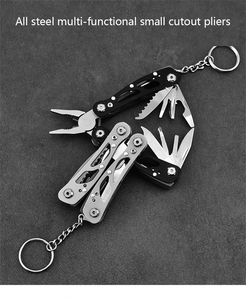 Alicates multifuncionales totalmente de acero, alicates portátiles para exteriores, equipo de emergencia para coche, llave inglesa, mini herramientas plegables colgantes