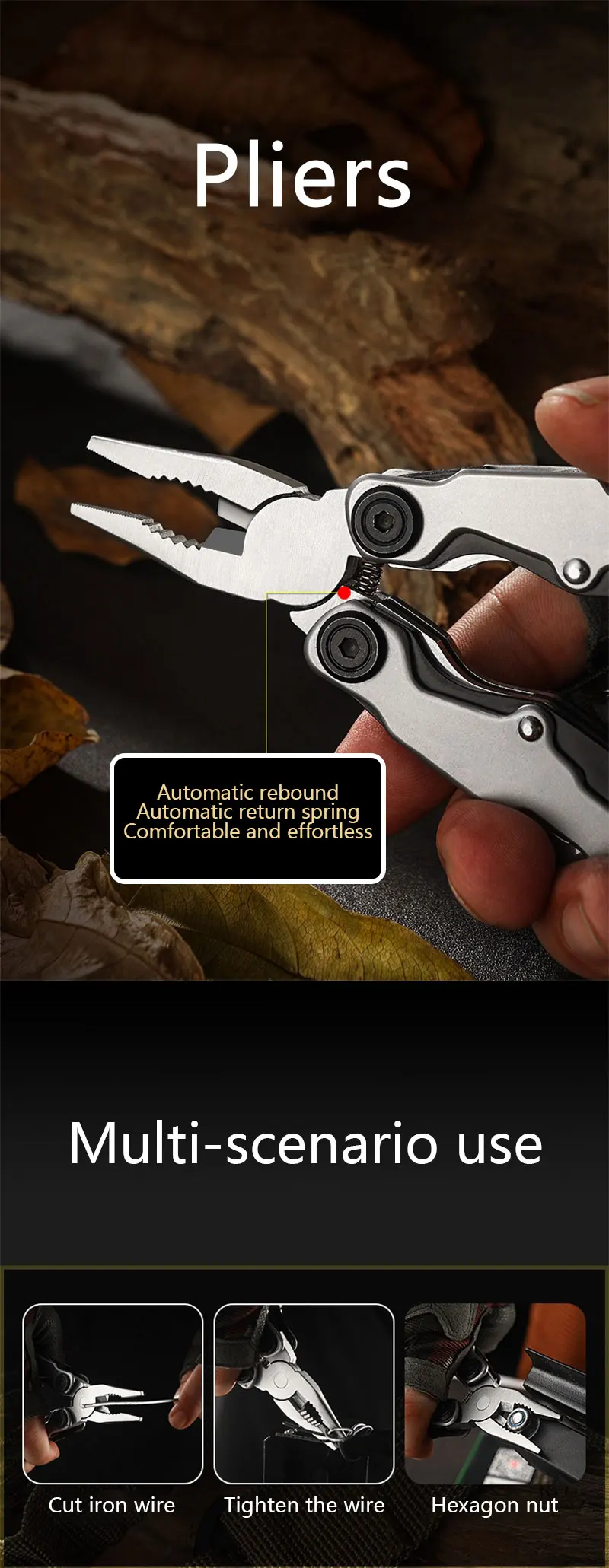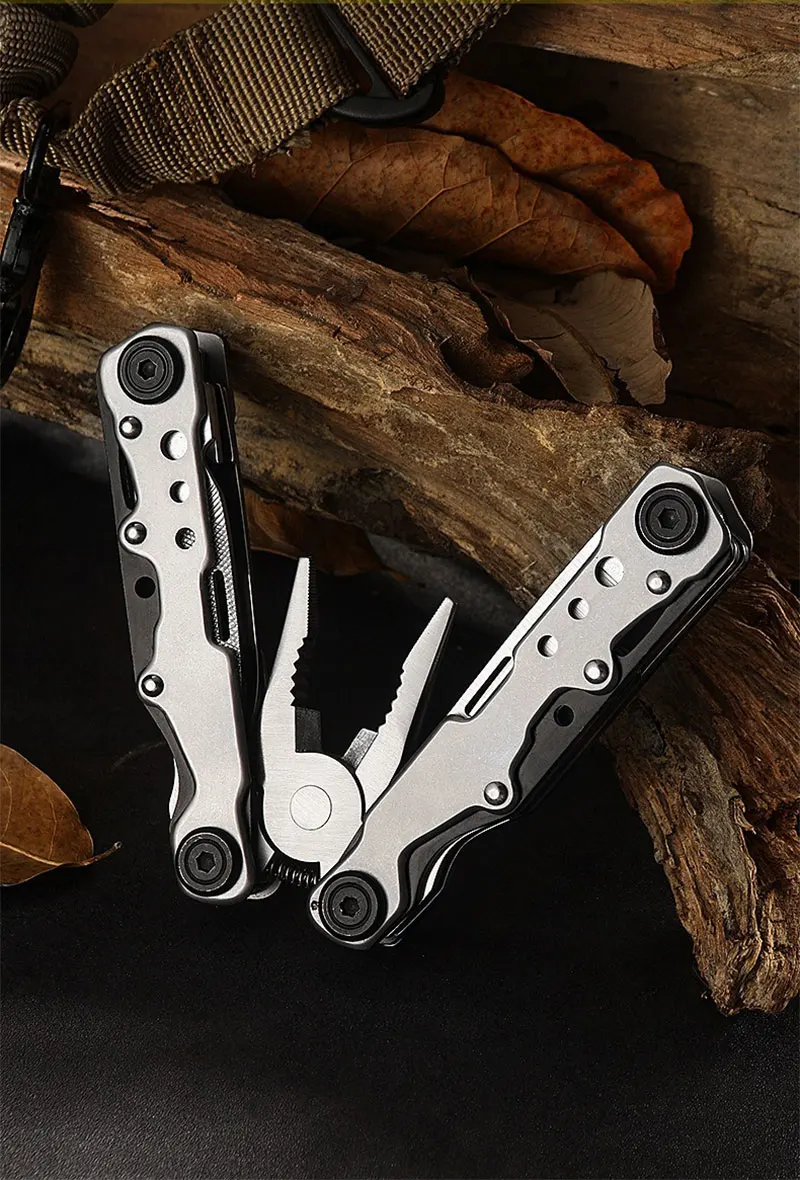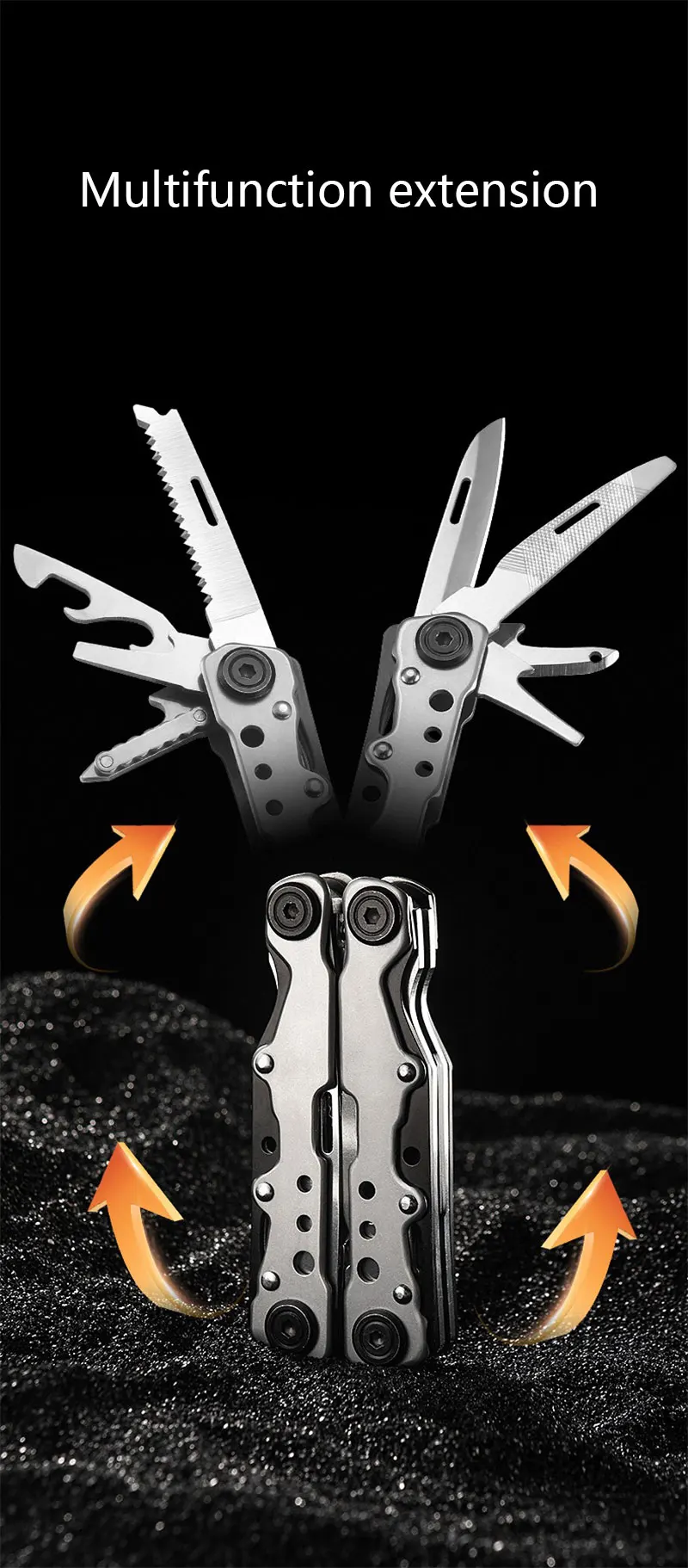 Alicates plegables de acero inoxidable para exteriores, herramientas multifuncionales, alicates combinados para acampar, alicates medianos y grandes
