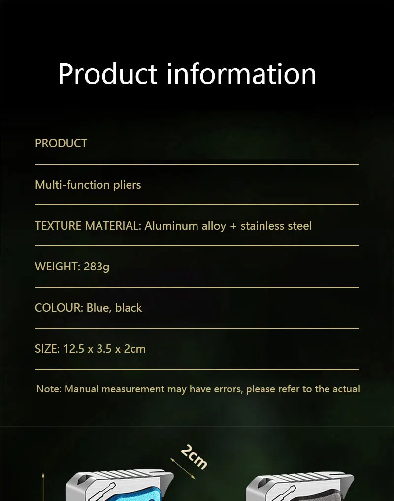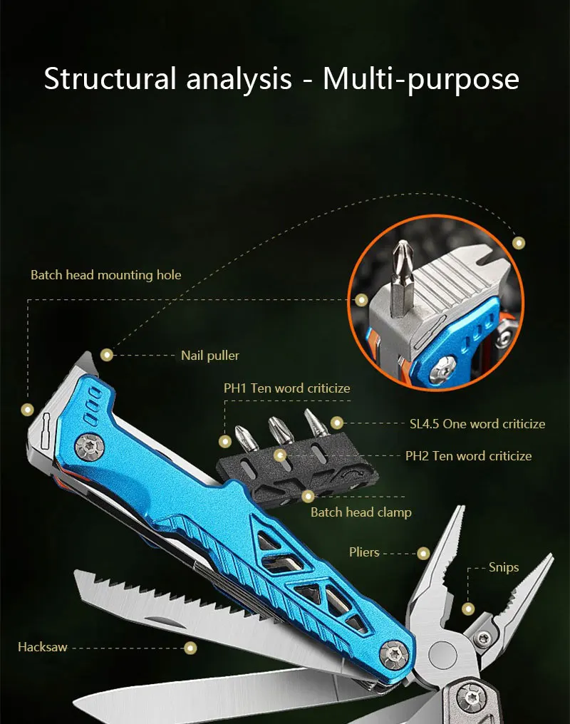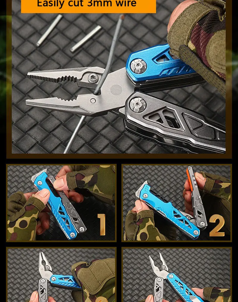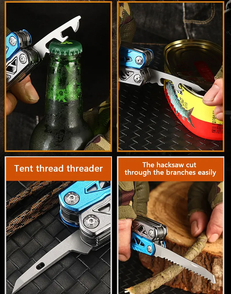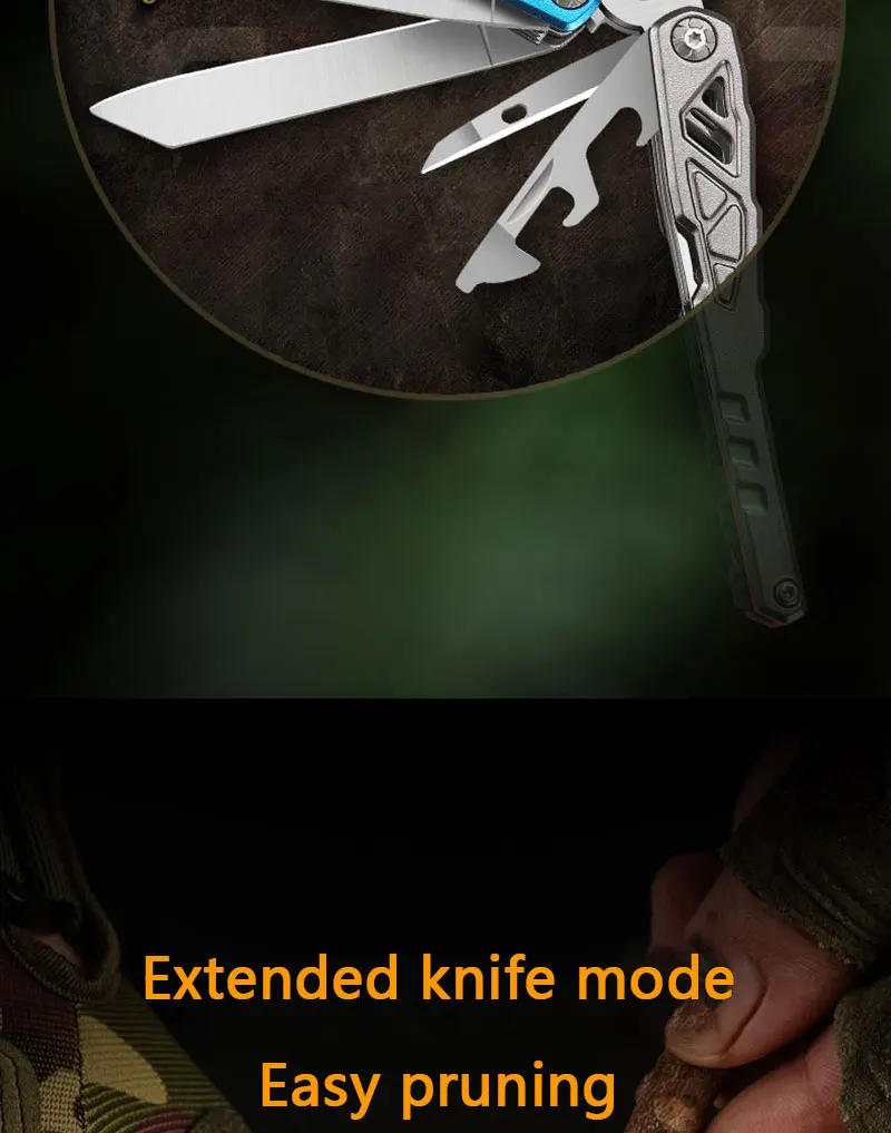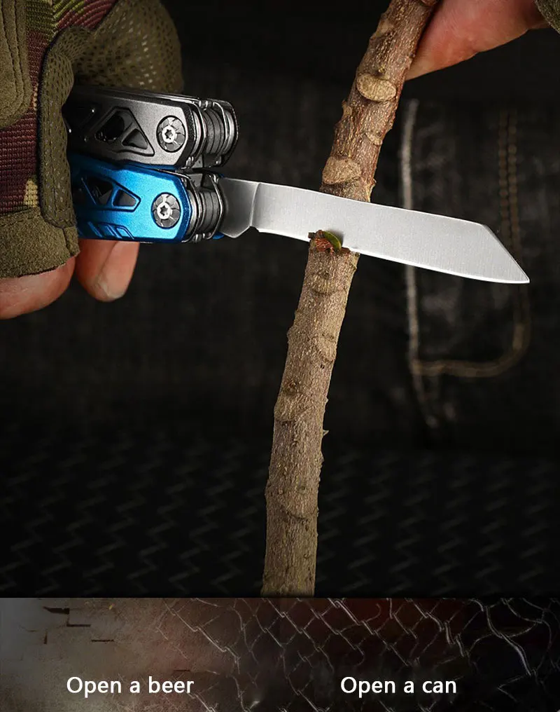 El cuchillo está borroso. Realmente no es un cuchillo. Otras funciones están bien. Pero si estás acostumbrado a cuchillos suizos, estas alicates plegables claramente tienen un nivel de calidad más bajo.