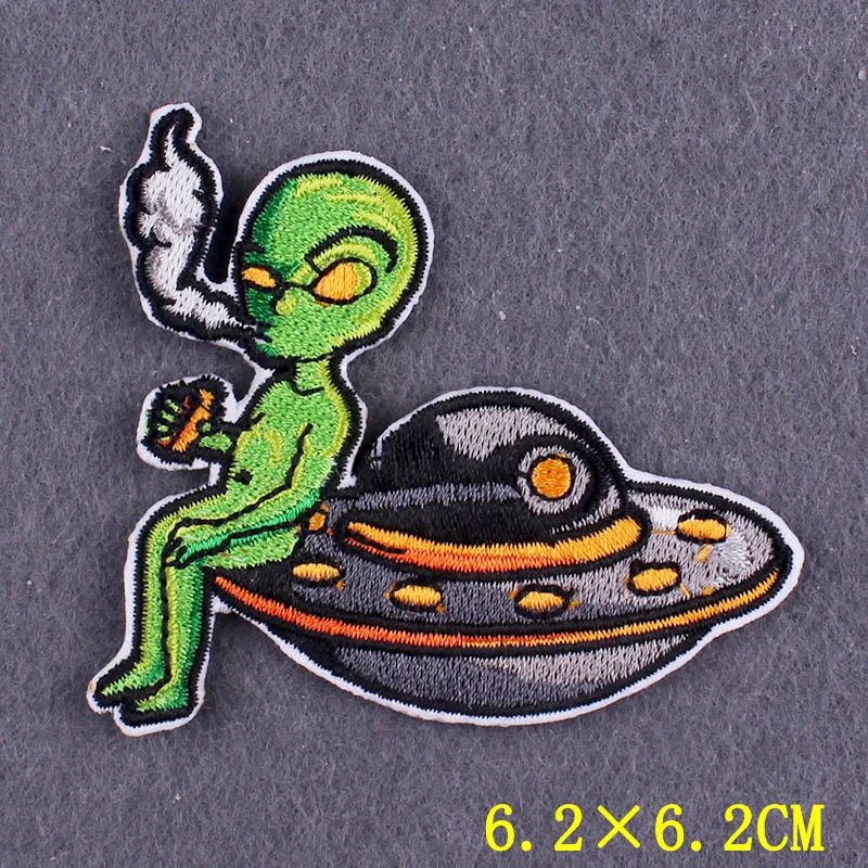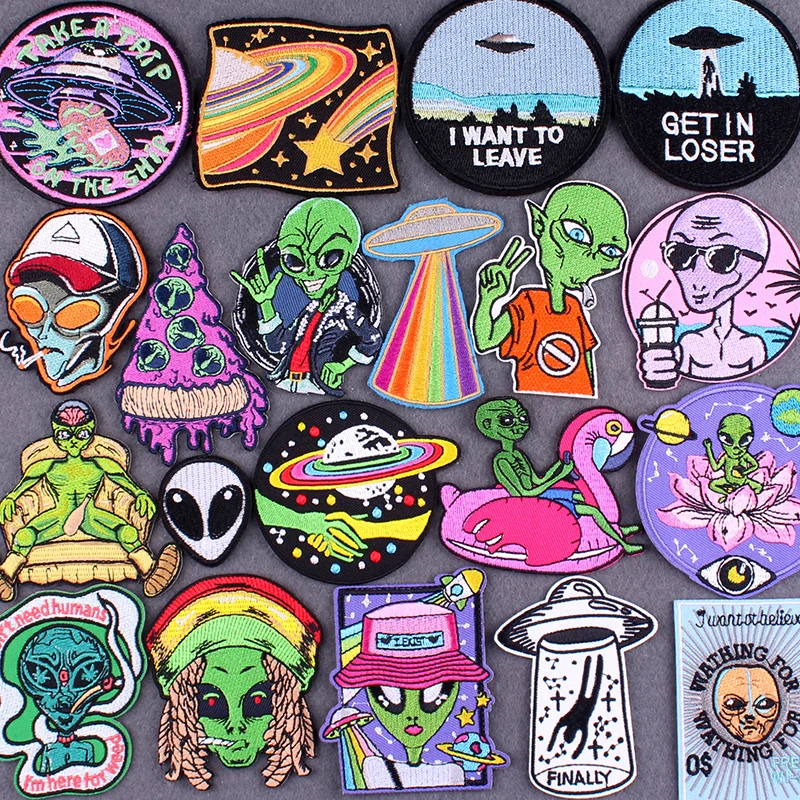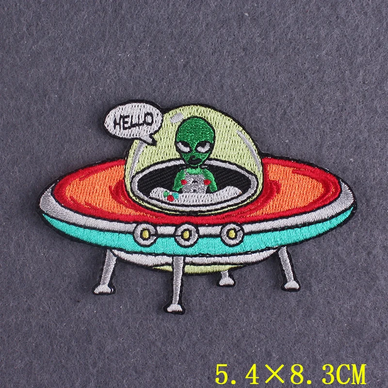 Parche de Alien UFO para planchar, parches de planetas espaciales para ropa, parches termoadhesivos para ropa, pegatinas a rayas